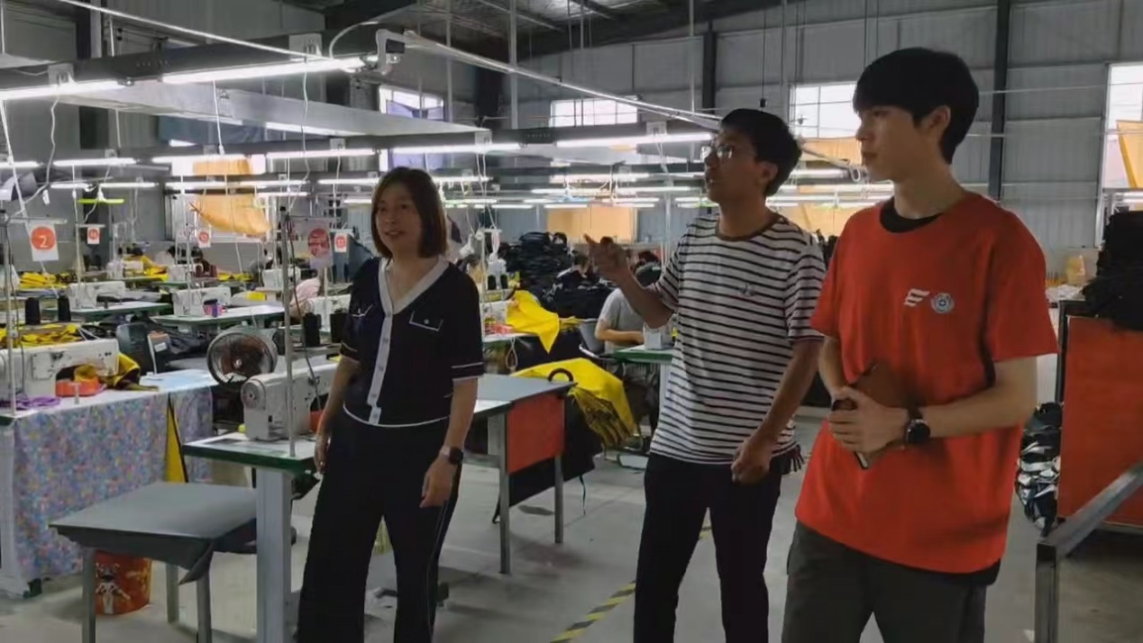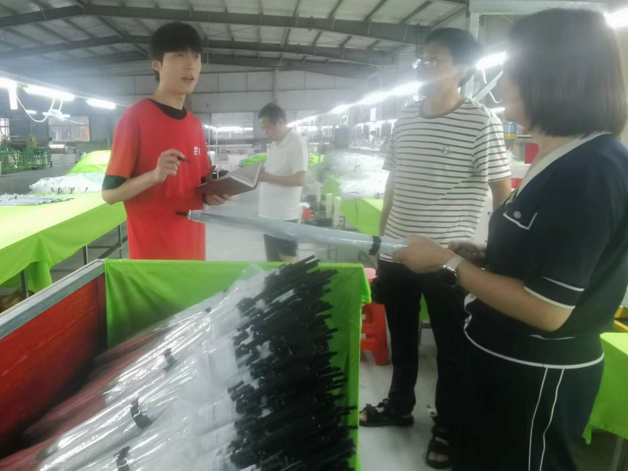 在李书记的引领下,队员们深入到腰店镇雨伞产业车间,了解雨伞的制作过程、生产工艺,并询问了销售途径与发展现状。经过调研,队员们了解到:“1+N”雨伞产业是“龙头企业+规模厂+雨伞工坊+农户加工点”的产业发展模式,把加工环节延伸到农户家中,形成了“以户为单位的小作坊、以村为单位的加工车间和以管理区为单位的规模厂”的乡镇雨伞加工生产格局。李书记说到:“我们的‘1+N’雨伞产业可以为本镇甚至周边乡镇的村民带来丰厚的收益,使他们在闲暇时间可以通过专职或兼职工作赚取更多的收入,补贴家用。”