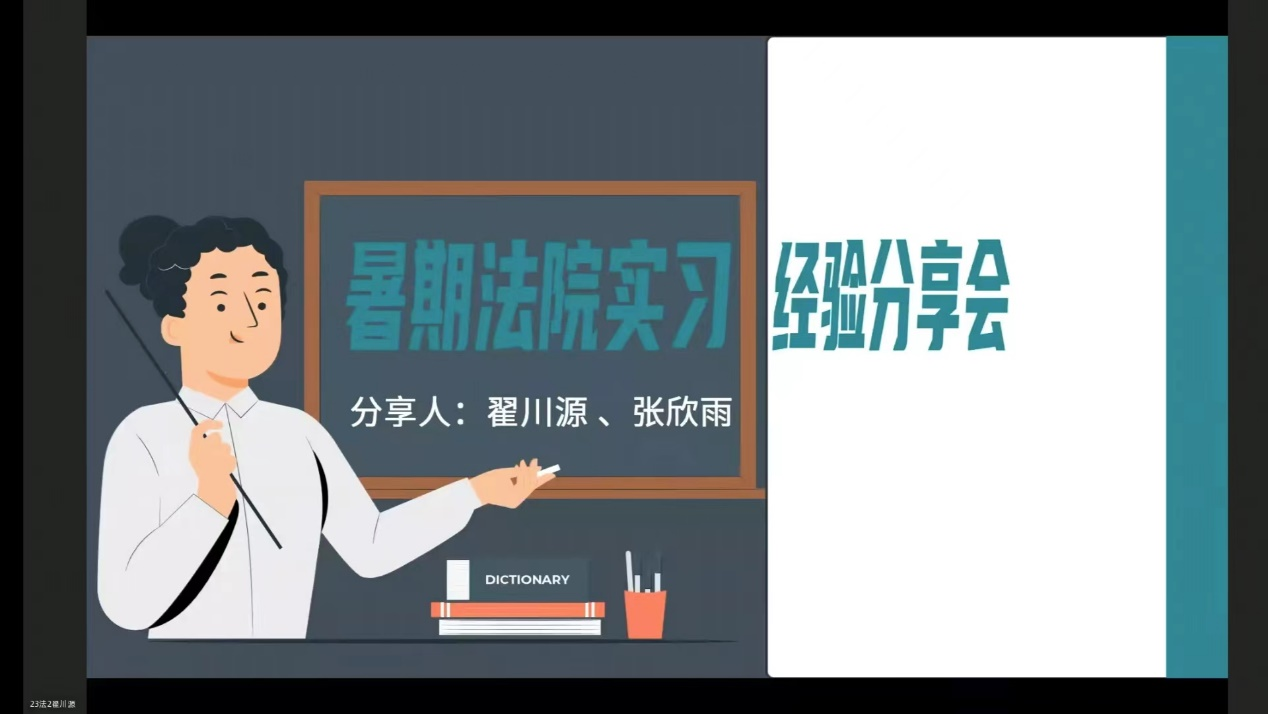在实践结束后,在团队指导老师文法学院李晓田的带领下,“法界探索”实践队的成员,通过钉钉会议开展“暑期法院实习经验分享会”。实践团队就执行局、审管办的实践经验展开论述。团队成员分享了参与案件审理的紧张与兴奋,与法官、律师等法律职业人士的交流与启发等,从多方面、多角度地丰富了同学们对法院工作的认识和理解。