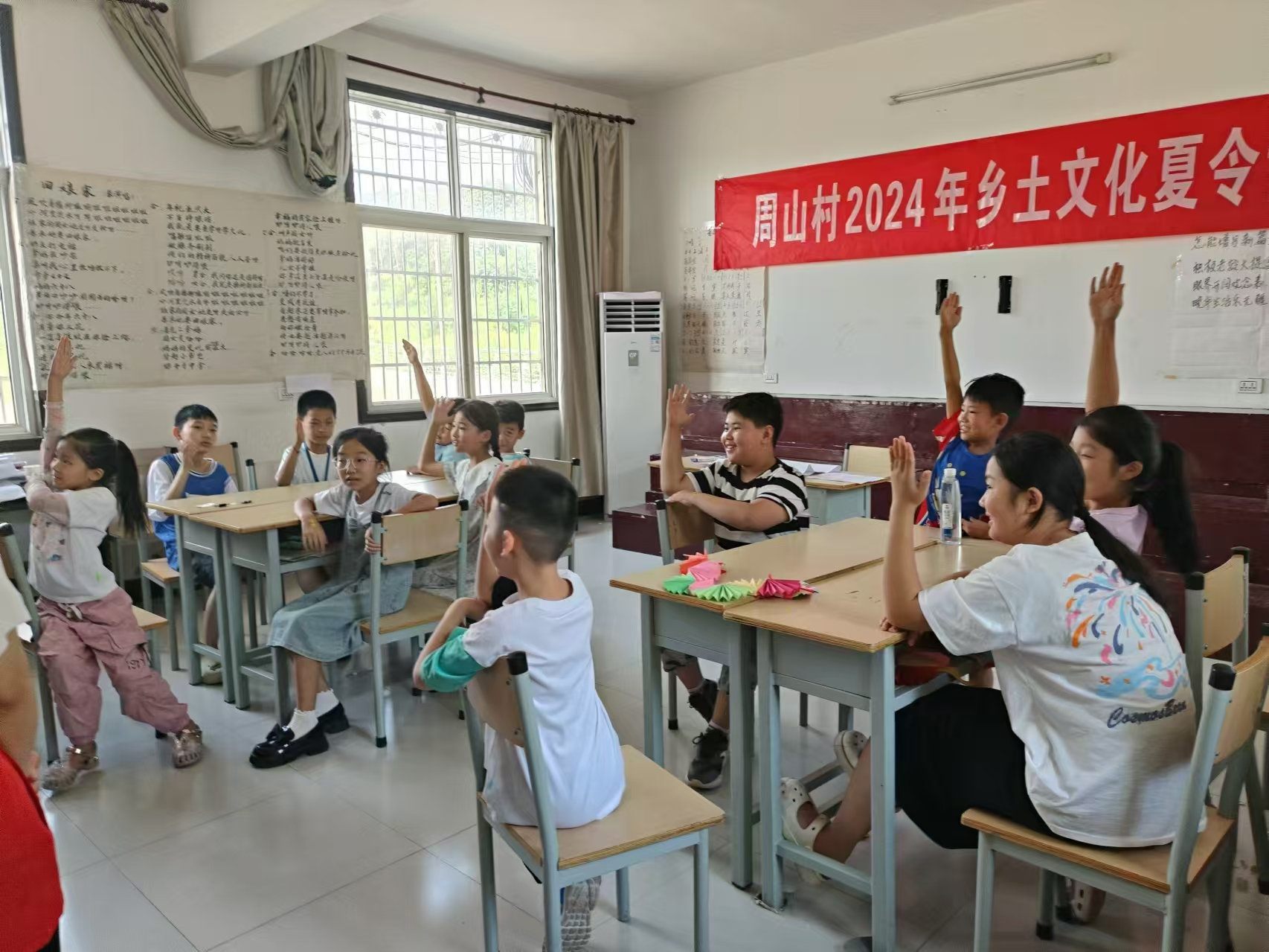 8月16日下午,由孩子们自己主持、自己编排的结营汇报演出精彩上演,独舞《灯火里的中国》、《寄明月》、口才表演《一人我走上台》、集体课桌舞《猪猪侠》、背包走秀、情景剧《家庭风波》、《和解》等节目依次登场,在孩子们那满溢的活泼热情中,周山村2024年乡土文化夏令营缓缓地落下了帷幕。