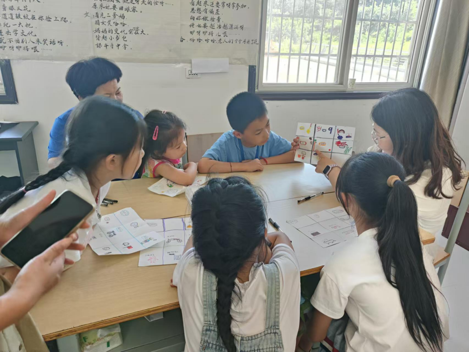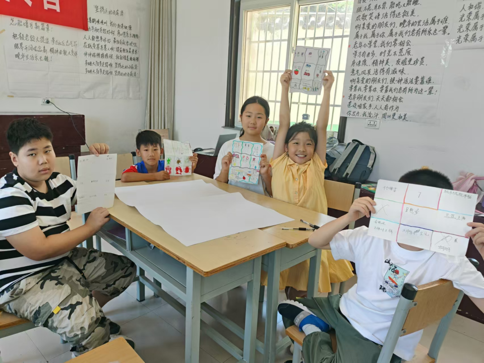 8月12日上午,13位周山村的孩子一同相聚在文化大院活动室,在简单介绍完此次夏令营整体安排后,老师引导大家各自根据姓名、年龄、爱好、喜欢的食物、运动、影视、书籍、人物及想去的地方等关键信息绘制自我九宫格,并进行组内分享,简单的操作让大家在短时间认识了彼此,紧接着各种团队游戏的PK,让小组的凝聚力快速提升!