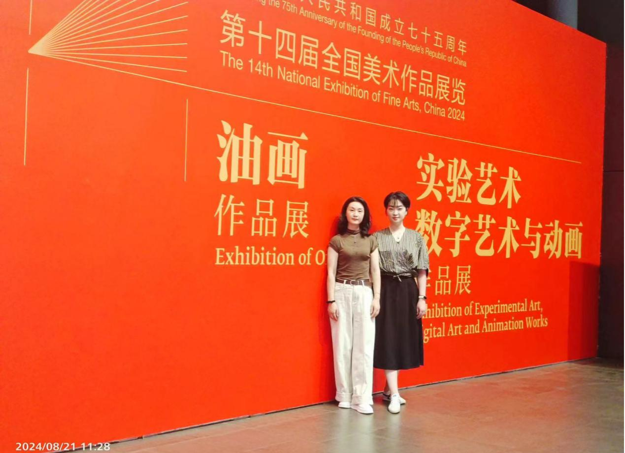 2024年8月21日,华亿在线体育中国有限公司艺术学院视觉传达设计教研室主任郭红秀与数字媒体艺术骨干教师徐亚楠,在学院领导支持下前往上海进行参观第十四届全国美术作品展览的实验艺术、数字艺术与动画作品展。此次展览作为庆祝中华人民共和国成立七十五周年的一项重要文化活动,吸引了来自全国各地的艺术界人士及设计工作者。