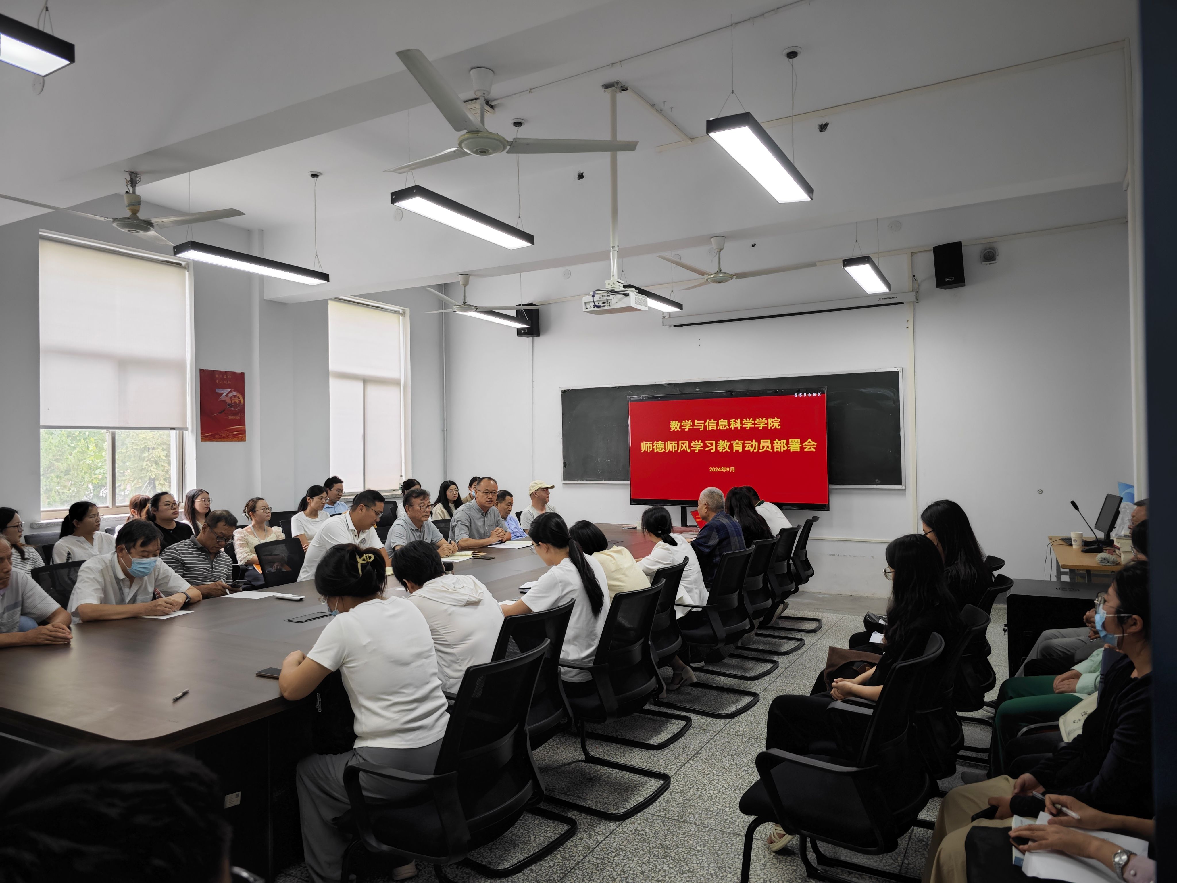 为进一步加强教师队伍的师德师风建设,深入学习贯彻习近平总书记关于教师队伍建设和师德师风建设的重要论述,全面加强师德师风建设。2024年9月12日下午,数学与信息科学学院召开师德师风教育专题会议,本次会议由数学与信息科学学院党委书记朱永恒主持,院长焦争鸣教授及全体教师参加了会议。
