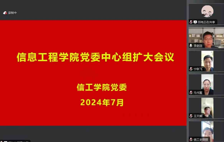 7月31日上午,信息工程学院线上召开党委中心组扩大会议。本次会议由党委书记李赵法主持,学院领导班子成员和各支部书记参加会议。