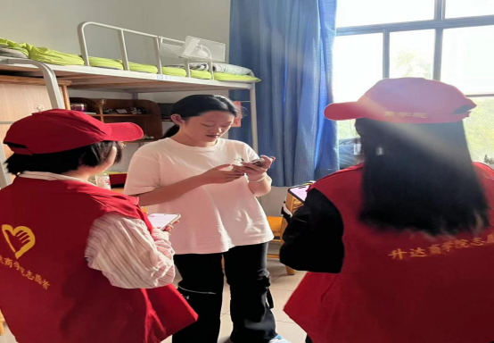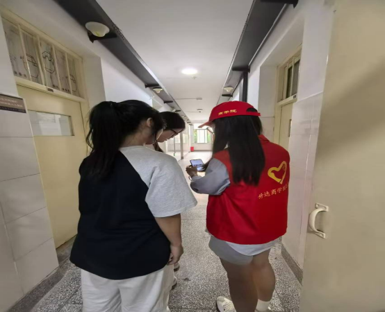 在新生们休息期间,党员志愿者还深入学生宿舍楼,逐个排查新生宿舍内的安全隐患,向同学们强调宿舍安全的重要性,并提醒新生对陌生电话提高警惕,谨防推销、电信诈骗以及各种不良宣传。深入宿舍期间,志愿者们发现,每个新生宿舍都洋溢着热闹而温馨的气氛,党员志愿者们详细解答了同学们在学业、生活等方面的疑问,并叮嘱大家除了提高自身安全防范意识,遇到自己处理不了的问题,还要及时向学院老师寻求帮助。同学们纷纷表示,一定会以积极的心态和良好的风貌迎接崭新的学习生活。