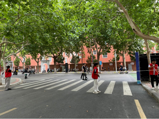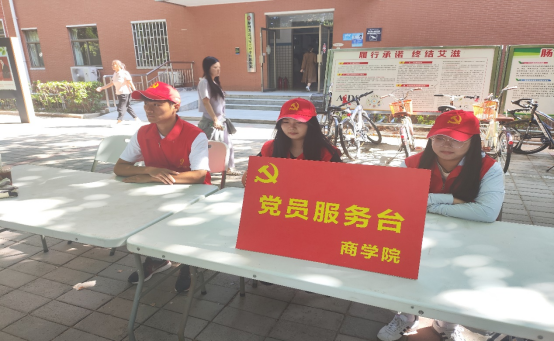 商学院党委组织党员志愿者,明确分工,设立服务台。志愿者们也怀着饱满的热情投入到志愿服务工作之中,将场地附近的电瓶车、自行车靠边摆放,搀扶、照顾军训过程中身体不适的学生,并实行轮班机制,为新生军训的顺利开展提供坚实的保障。