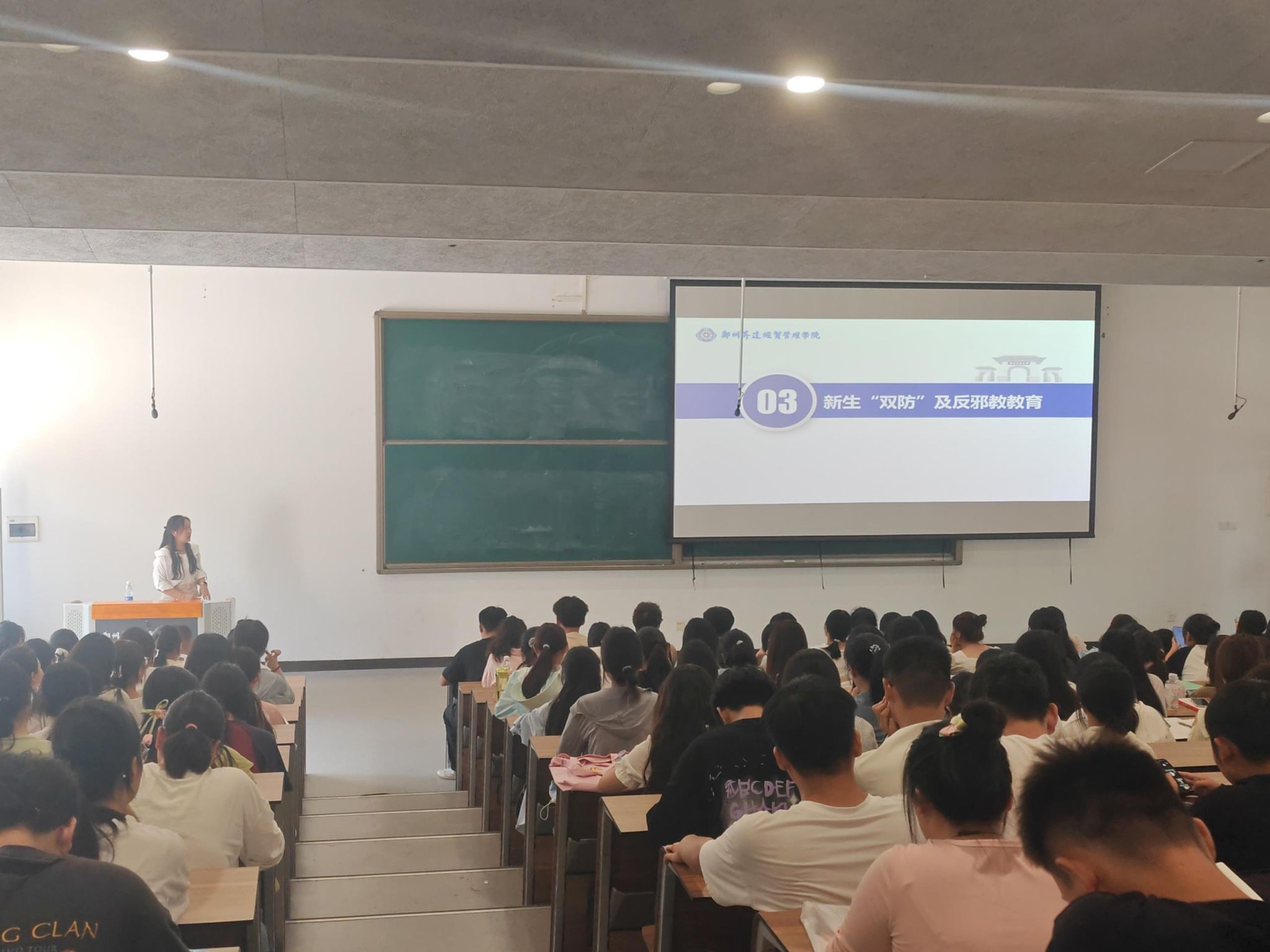 为提高大一新生对邪教的防范意识与抵制能力,维护校园安全稳定,9月19日金融贸易学院于三号楼107教室组织各班学生开展新生反邪教育主题班会。