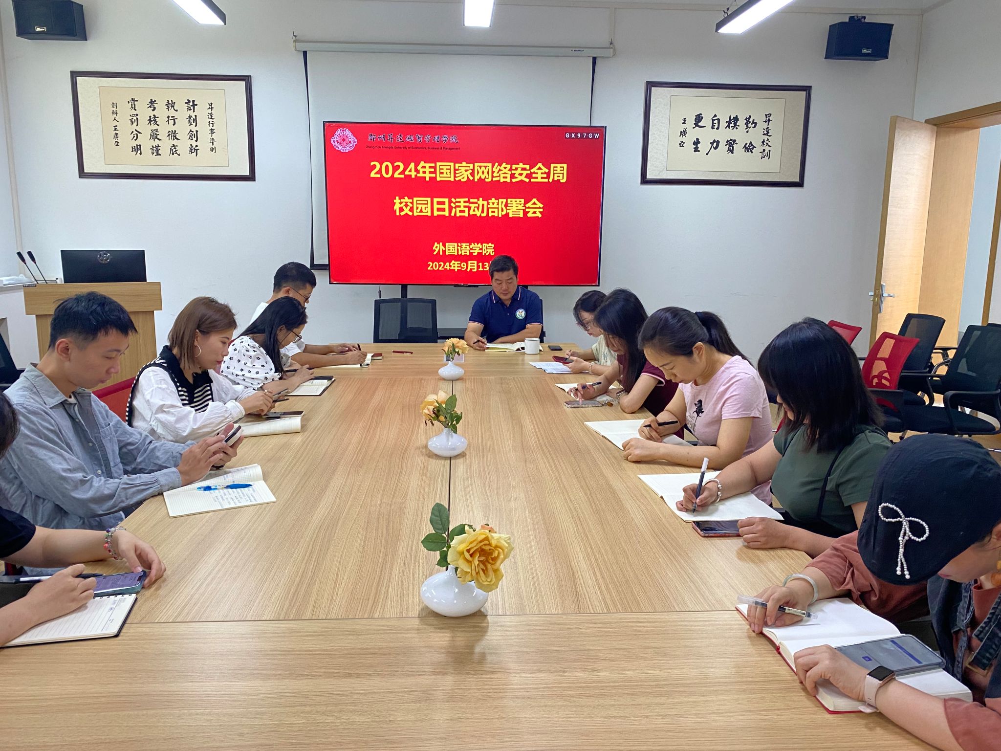 为深入学习宣传贯彻习近平总书记关于教育强国、网络强国的重要思想,宣传贯彻习近平总书记对做好互联网时代的学校思想政治工作和意识形态工作、网络安全工作“四个坚持”的重要指示精神,按照省委教育工委、省教育厅工作安排,结合工作实际,根据学校安排,外国语学院于9月13日在教一楼206会议室召开了国家网络安全周校园日活动部署会,外国语学院院长王莉莉,院党委书记石皓召,行政秘书丁玥以及全体辅导员老师参加了此次会议。