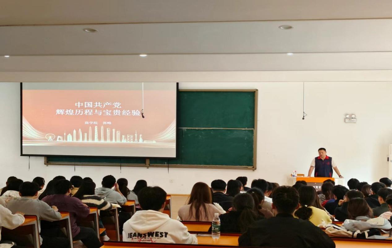2024年10月11日中午,按照校党委的统一工作部署,商学院党委书记郭峰同志在教学楼2号楼116教室为商学院学子讲授秋季开学思政第一课《中国共产党——辉煌历程与宝贵经验》。