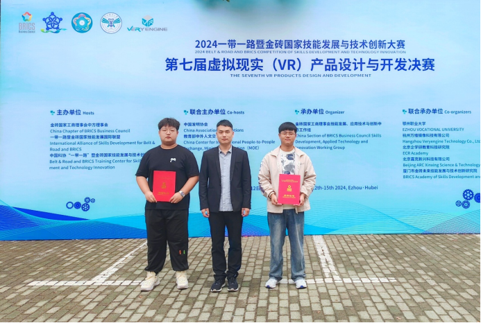 近日,2024“一带一路”暨金砖国家技能发展与技术创新大赛之第七届虚拟现实(VR)产品设计与开发赛项全国总决赛在鄂州举行。本次大赛历时四天,来自全国各省、自治区、直辖市的73所院校的94支参赛团队共162名国内外参赛选手同台共竞,将共同推动虚拟现实(VR)技术在职业教育和国际人才培养上取得新突破。我校建筑工程学院委派李永涛老师带队,由2021级土木工程专业学生宋金盛、张星辰两位同学代表学院参赛。本次参赛选手实力强悍,经过一番激烈的比拼,最终获得优秀奖。