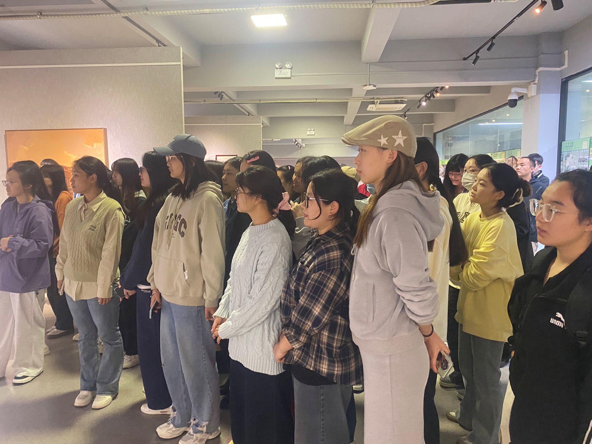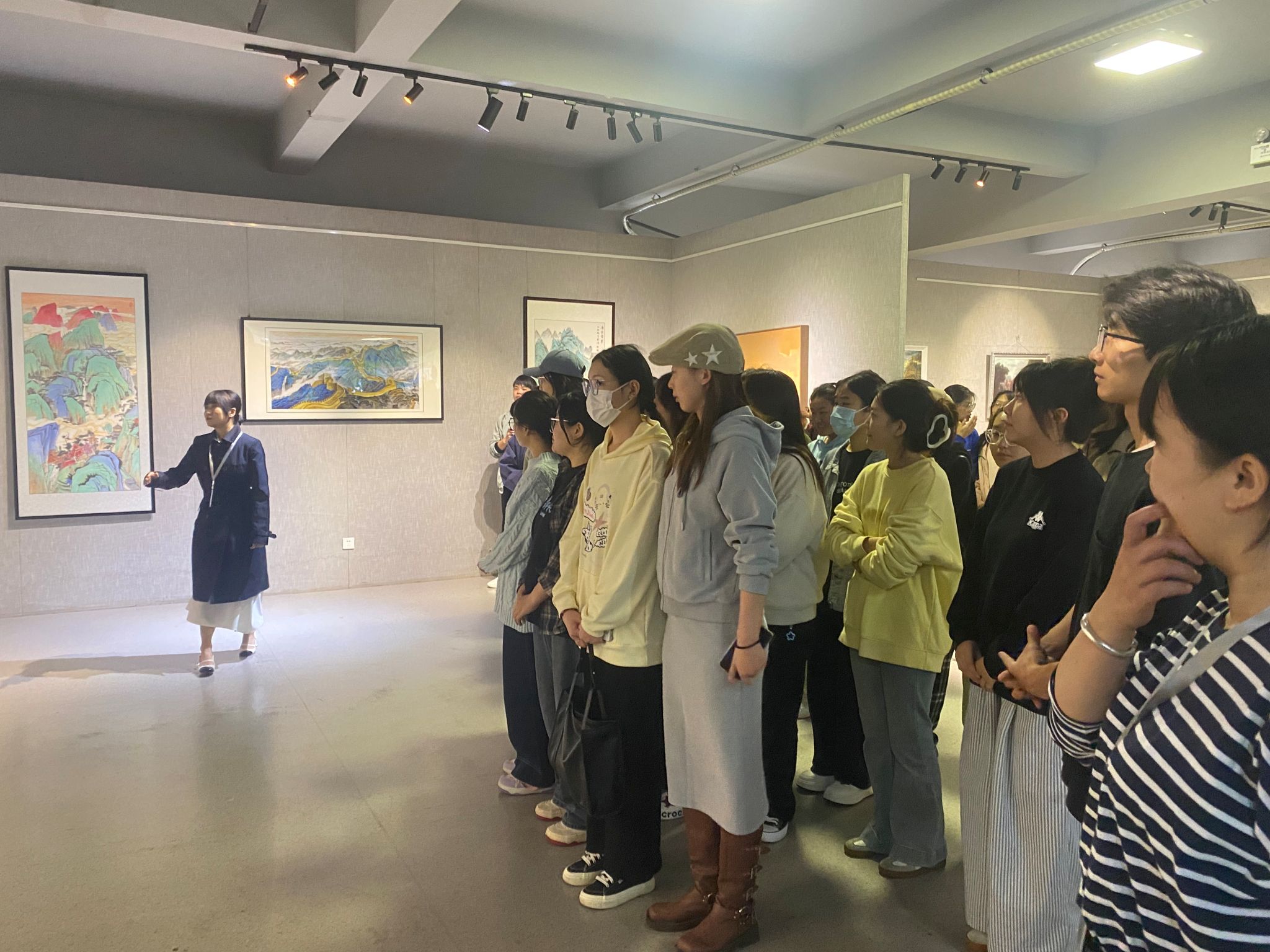 2024年10月17日下午,外国语学院组织师生代表前往艺术学院大楼3楼展厅参观“铸牢中华民族共同体意识”书画摄影展。