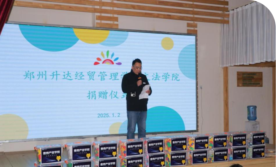 随后,文法学院党委书记刘晓川代表学校向奇色花福利幼儿园捐赠了玩教具等,并对幼儿园孩子们的健康成长表达了期许,鼓励孩子们快乐成长。
