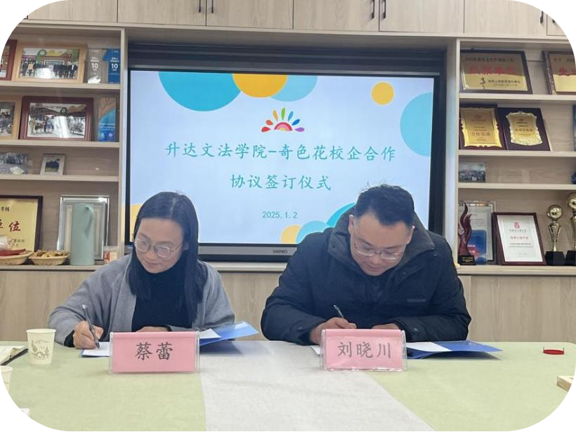 为全面促进学前教育人才培养与实践教学深度融合,切实提高实践教学质量,着力培养学生的创新精神和实践能力,1月2日,文法学院与郑州奇色花福利幼儿园举行校企合作签约仪式。文法学院党委书记刘晓川、校侨联秘书长王博、学前教育专业师生代表、童商产业学院教师代表等校方人员,以及郑州奇色花福利幼儿园园长蔡蕾等共同参与了此次活动。