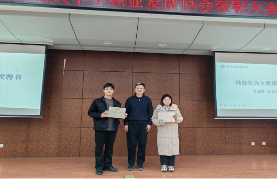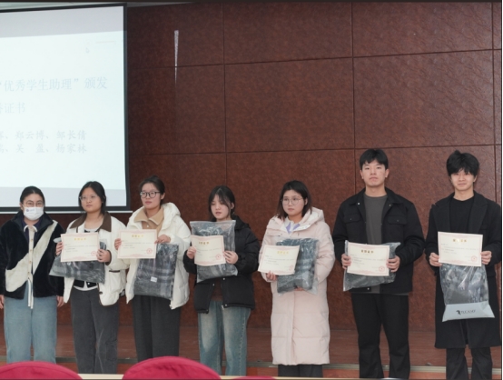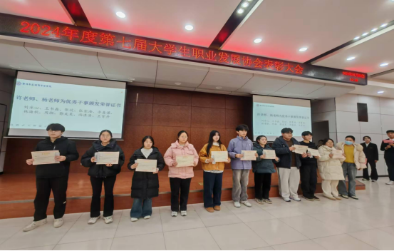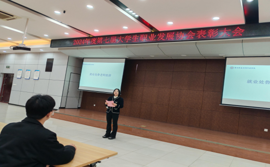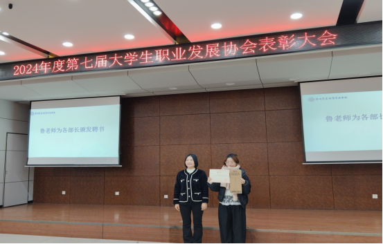 为了对工作认真负责,表现突出的学生助理给予充分的肯定和鼓励,协会特于2025年1月2日,在报告厅举办第七届大学生职业发展协会年度表彰大会。出席本次大会的有就业处处长冯科、就业与校友科科长鲁玲玉、就业处老师马正馨、杨焕焕。