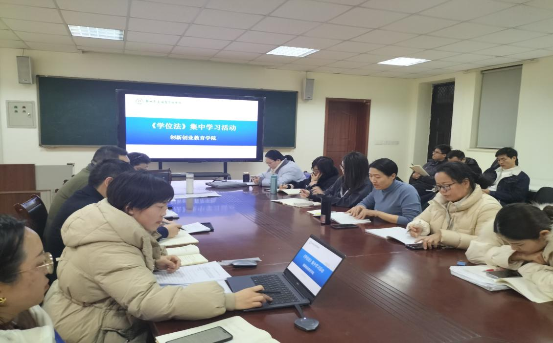 双创学院积极响应国家教育法治化进程,深入贯彻落实学校关于《中华人民共和国学位法》精神学习和宣传工作部署,于2025年1月2日在商管楼115会议室开展了了《中华人民共和国学位法》集中学习活动,此次活动旨在深化全院师生对相关法律的理解与应用,强化法治意识,确保学位授予工作的规范化与科学化。