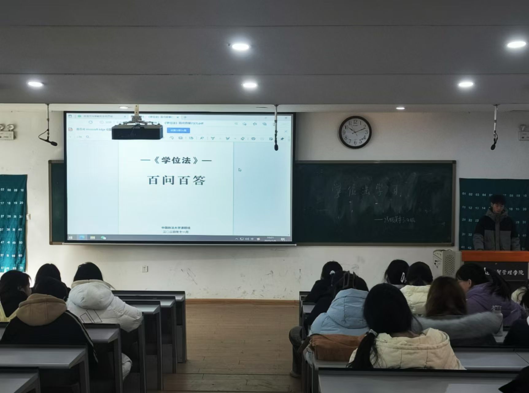 各班深入学习了《学位法》的立法背景、学位制度的发展历程,进一步了解了学位授予条件、学位授予单位、学位管理等方面的核心内容,学习了相关的真实案例,让抽象的法条变得鲜活易懂。同学们也在交流中加深了对《学位法》的理解,也明晰了学术道路上的“红线”与“底线”。