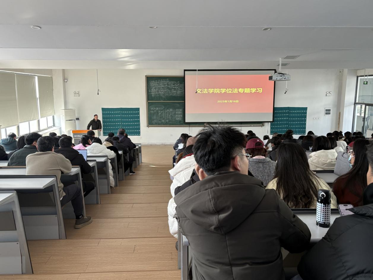 此次学位法专题学习会的召开,是文法学院加强法治建设、提升教育教学质量的重要举措,不仅提升了学院全体教职员的法律意识和业务水平,也为进一步规范学位授予工作、提升学院的教育教学质量和学术水平奠定了坚实的基础。