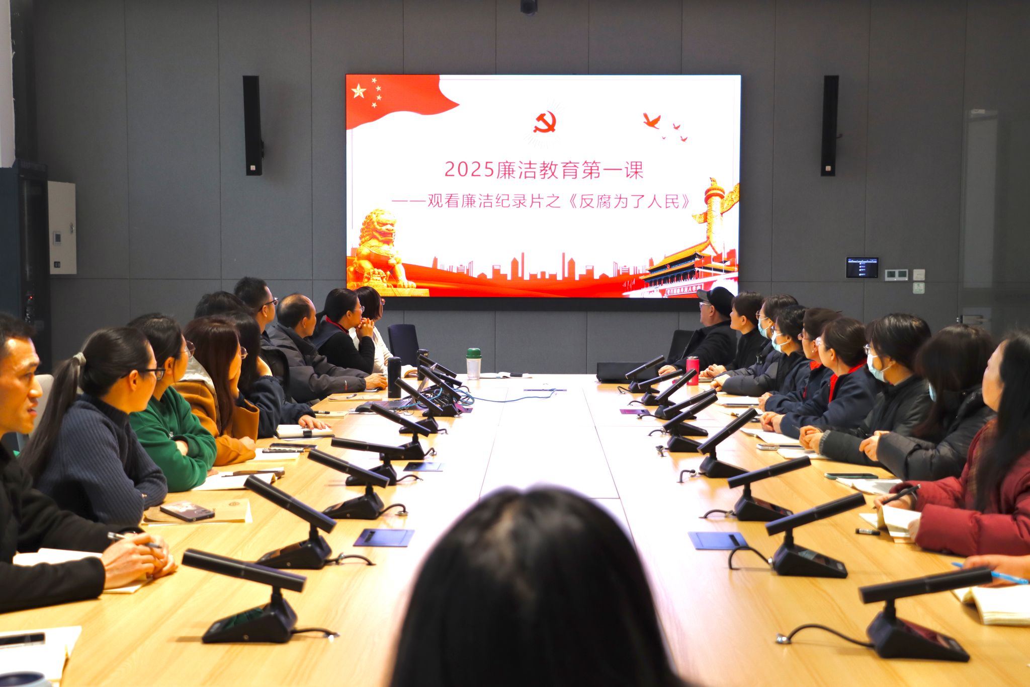 会议伊始,党支部书记郑晶传达了机关党委关于组织收看电视专题片《反腐为了人民》的通知,全体馆员集中观看了专题片第一集《惩治蝇贪蚁腐》。随后,各科室主任依次以PPT展示的形式对2024年部门工作进行汇报。