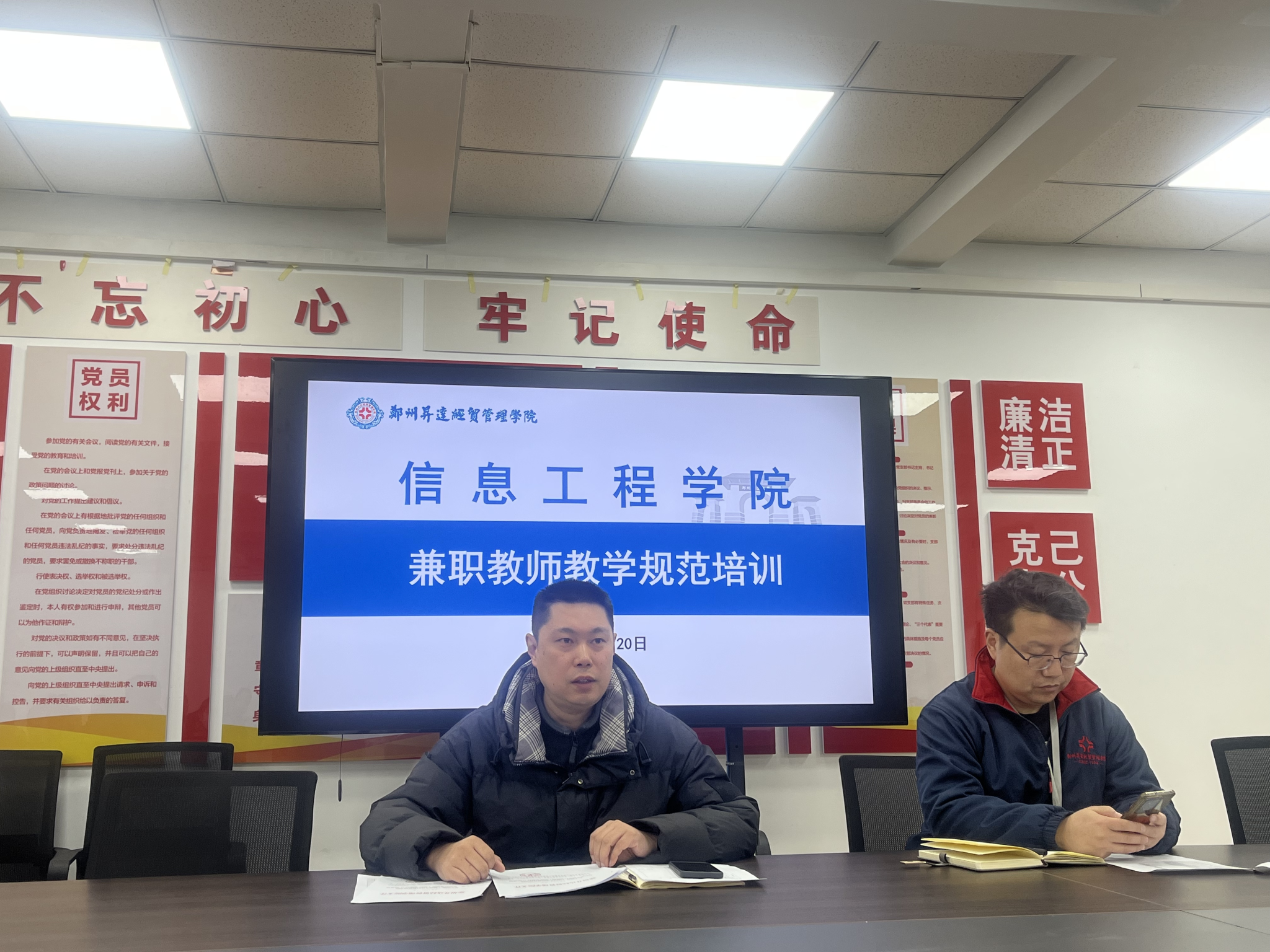为进一步规范外聘教师教学行为,保障教学质量,2025年2月20日,信息工程学院在218会议室组织召开了外聘教师教学规范会议。会议由程杰副院长、教学秘书赵会燕,各专业教研室主任以及学院全体外聘教师参加。