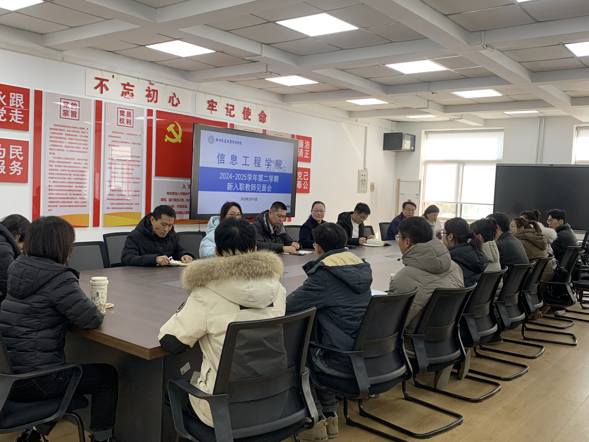 2月14日上午信息工程学院于会议室召开了2024-2025学年第二学期新入职教师培训会。本次培训旨在帮助新入职教职工尽快融入教学生活,熟悉学院常规的教学工作和管理制度,为他们在新学期的工作打下坚实的基础。