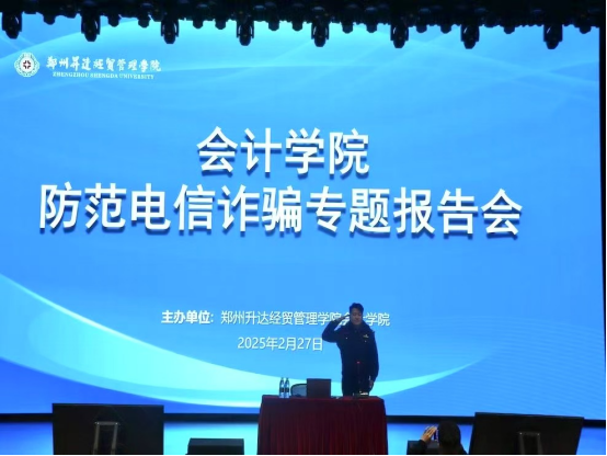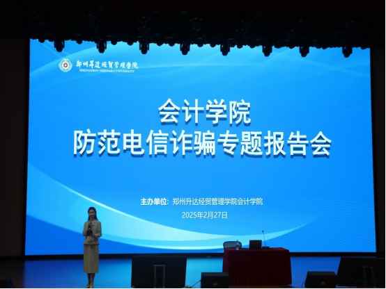 新学期初是电信诈骗的高发期,为了切实增强会计学院全体师生的防诈骗意识,营造安全和谐的校园环境,2月27日下午2:00,由会计学院主办的防范电信诈骗专题教育大型报告会在思源会馆顺利举办。参加此次报告会的领导、嘉宾及老师有会计学院党委书记张蕾同志,新郑市龙湖镇派出所大学办王国杰警官、吴文渊警官,会计学院行政秘书兼团委书记陈刚老师,会计学院团委副书记胡淑娟老师,会计学院反诈与安全专员李云云老师,我校保卫科乔丽红老师和会计学院全体辅导员老师、教师代表及涵盖全院各班的两千余名学生。此次报告由深耕反诈一线多年的郑州市公安系统反诈战线优秀代表吴文渊警官主讲。
