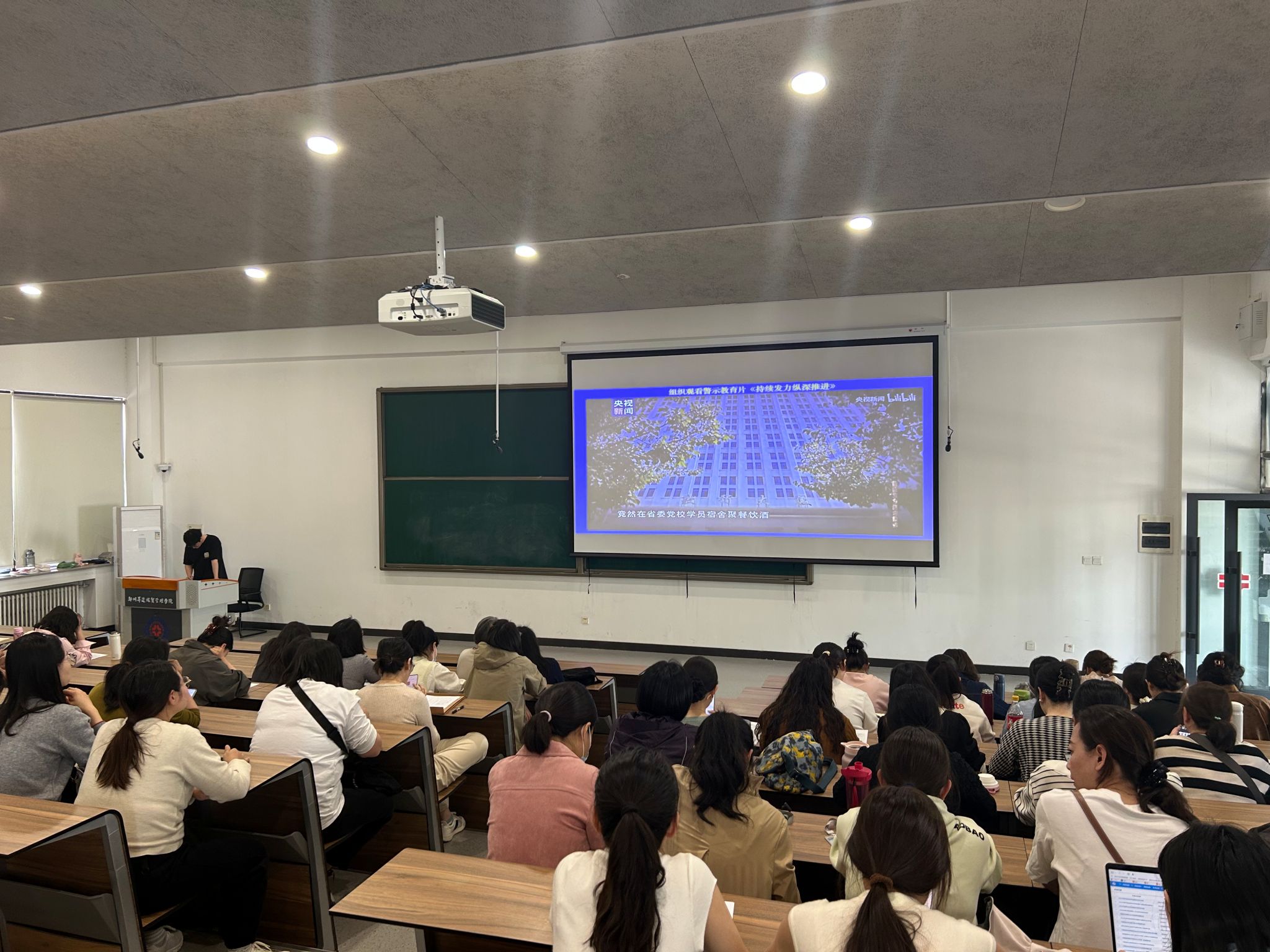 会议伊始,全体教职工观看了微视频《留得清气满乾坤》,深刻领会廉洁自律的重要意义。接着,又组织大家观看警示教育片《持续推进纵深发力》,让全体教职工深刻认识到坚守纪律红线的重要性与必要性。党委书记钟江鸽说,作为新时代的践行者,必须时刻绷紧纪律这根弦,把规定要求转化为自觉行动,在工作和生活中始终保持清醒头脑,筑牢拒腐防变的思想防线,以实际行动维护党的先进性和纯洁性,在思想层面,全体教职工要高度重视,把学习贯彻中央八项规定精神当作长期坚守的政治任务,紧密结合师德师风建设,在思想上筑牢防线;在作风建设上,以严的基调、严的措施、严的氛围,让清正教风、廉洁校风成为学校的鲜明底色;在责任落实上,要压实各方责任,推动学习教育走深走实。
