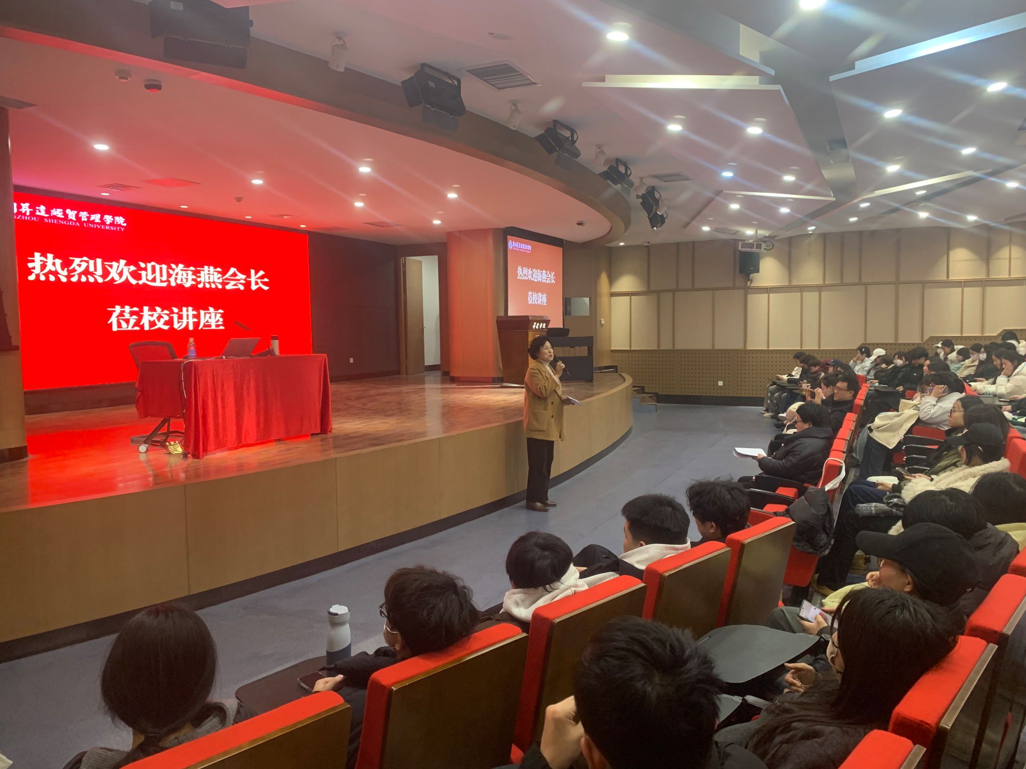 讲座伊始,吴柏林院长首先介绍了海燕会长的经历与资历,她曾任中央电视台《歌声与微笑》《合唱先锋》总导演、国家艺术基金2025年度艺术人才培养资助项目授课专家,受聘为首都经济贸易大学、南京农业大学等多所高校的艺术顾问和客座教授,并荣获“中国—南非文化交流使者”称号,在公共文化传播与国际艺术交流中成果斐然。
