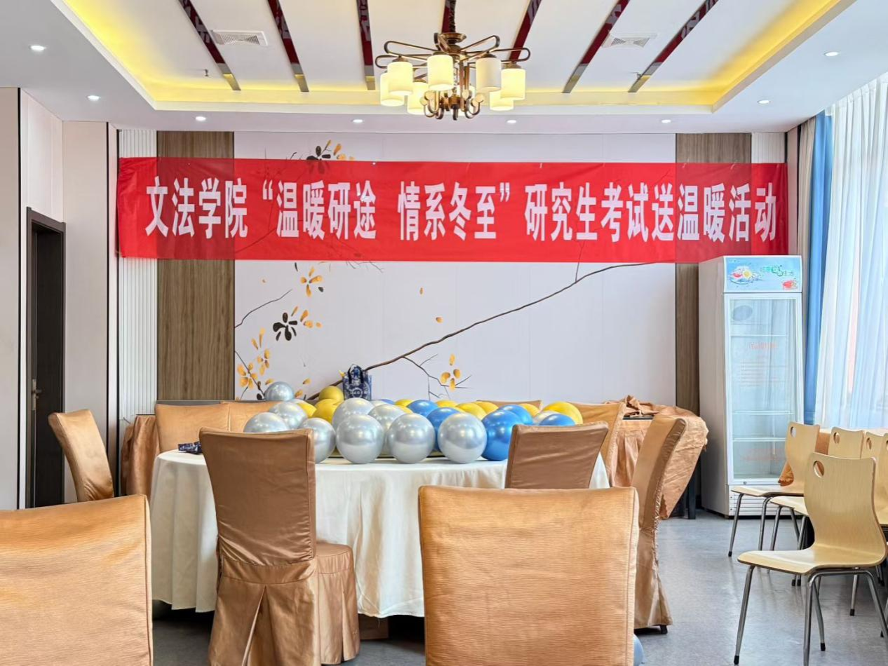 冬意渐浓,研途正酣。2026届研究生入学考试恰逢“冬至大如年、人间小团圆”的传统佳节,这一节点既是学子求学路上的重要考验,也承载着民俗团圆的美好寓意。彼时,文法学子焚膏继晷、全力备战,为让大家在紧张备考中感受浓厚节日氛围,以民俗温暖浸润心灵,文法学院特策划“温暖研途,情系冬至”考研爱心送考活动,以民俗为纽带搭建师生连心桥,既传递学校与学院的深切关怀和殷切期望,也让逐梦学子在追梦路上真切感受到家的温暖与集体的关爱,让文化温情与育人温度双向奔赴。