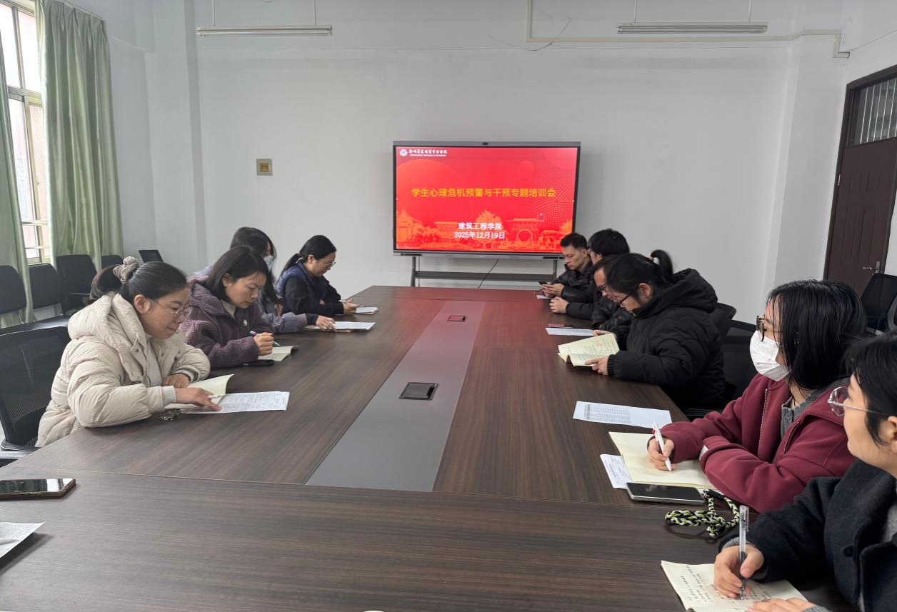 为进一步加强学生心理健康教育工作,提升全体辅导员对学生心理危机的识别与干预能力,切实筑牢校园安全防线,建筑工程学院于12月19日组织召开了“学生心理危机预警与干预”专题培训会。院党委副书记支园园和全体辅导员参加了本次培训,培训由建工学院彩虹桥心理辅导站站长段续洪主讲。
