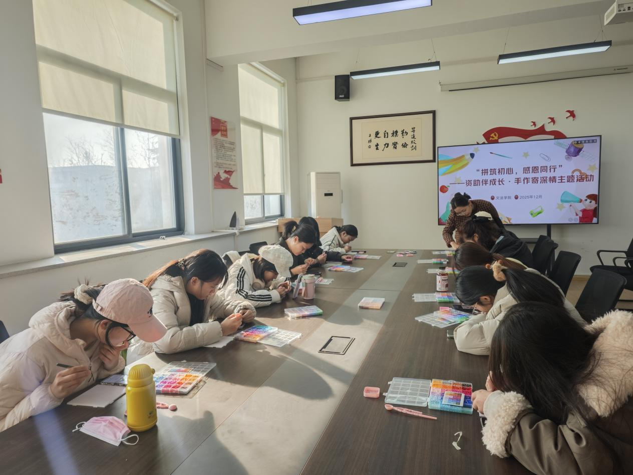 为进一步深化大学生资助育人成效,引导受助学生铭记资助关怀、厚植感恩情怀,文法学院于2025年12月17日在教学1号楼314会议室举办了“拼筑初心,感恩同行——资助伴成长·手作寄深情”主题活动。
