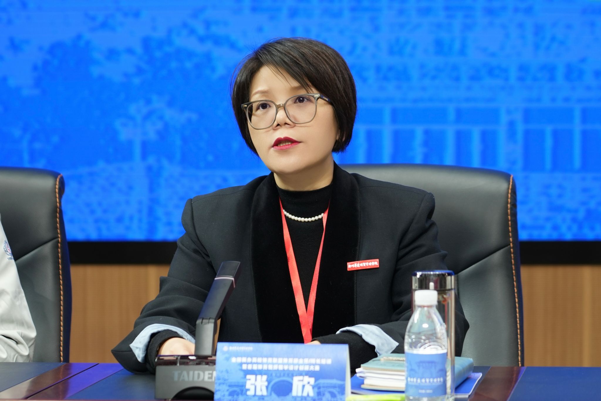 张欣代表学校向来自全国高校的领导、专家、教师代表及所有关心支持学校发展的朋友们表示热烈欢迎和诚挚感谢。她简要介绍了学校的发展历程、荣誉与办学理念,强调学校长期支持体育工作,积极推动教学改革,在课程、实践与师资建设方面取得显著成效。她表示,学校将全力做好服务保障,期待与兄弟院校深化合作、共解难题、共建品牌。她相信本次大会将为全国民办高校体育教育高质量发展注入新活力,为教育改革和生态构建贡献智慧力量。最后,她预祝活动圆满成功。
