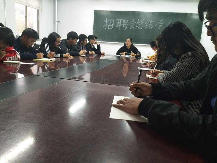 会上,就业工作室干事分别汇报了各自在招聘会中的工作情况;就业工作室部长就2018届就业工作进行总结;团委副书记菅蒙迪对工作中存在的问题及进一步打算进行总结。