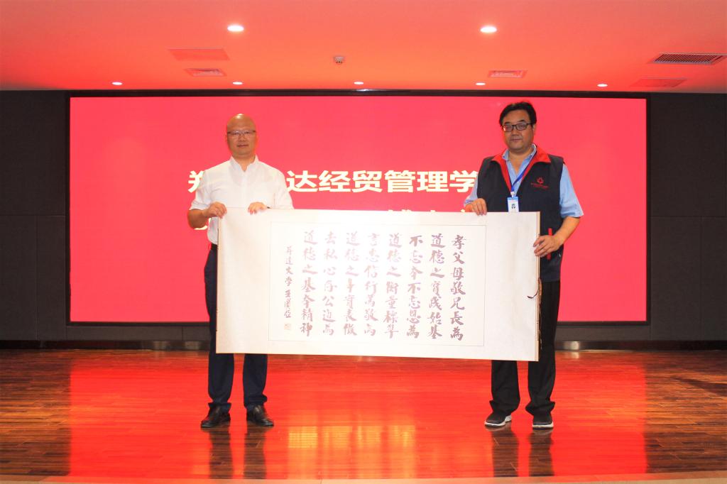 首先,执行董事王新奇博士代表校方向耿俊华总经理颁发了客座教授聘书,并赠送了升达创办人王广亚博士的珍贵书画。
