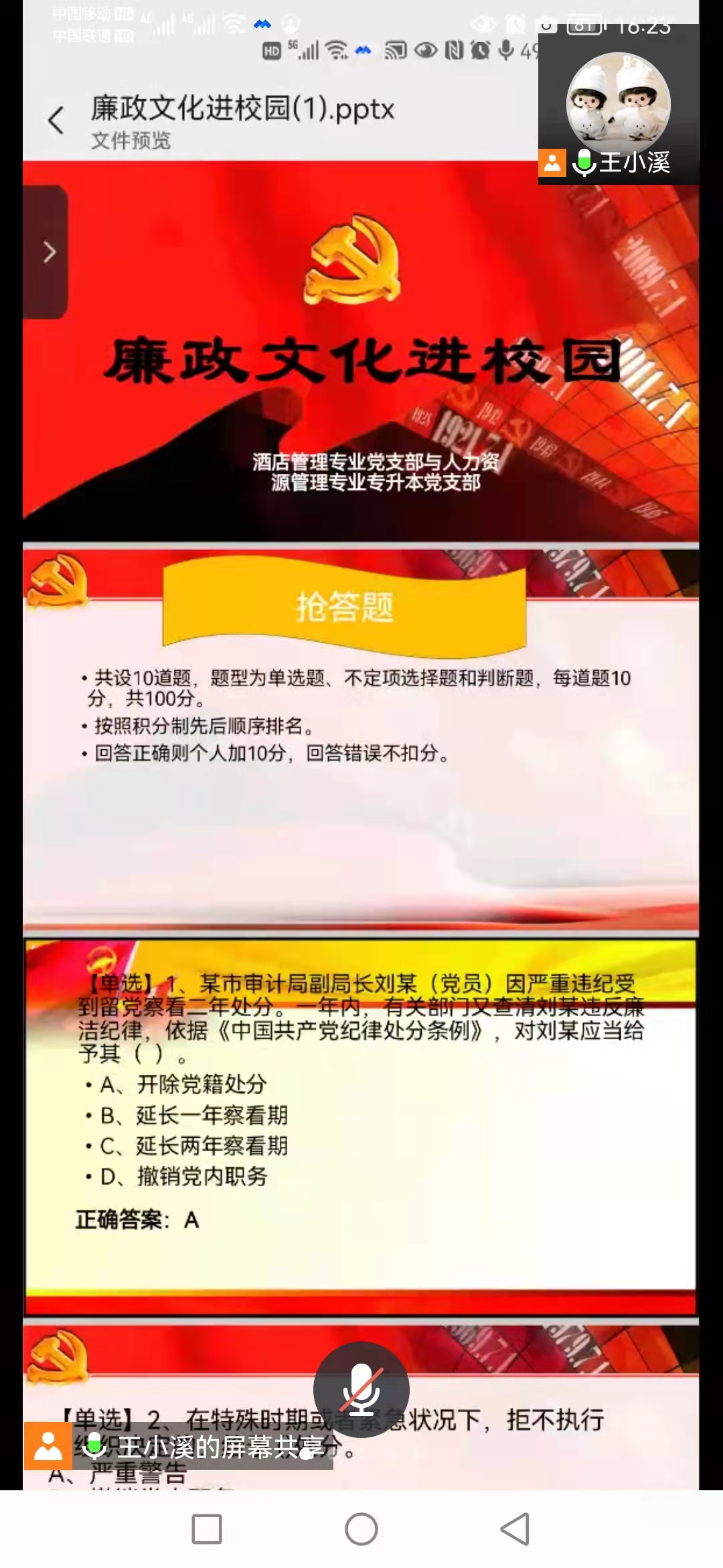 为进一步构建清廉、高效、和谐的校园文化环境,切实营造以党建带团建的良好氛围,3月23日下午管理学院酒店管理专业党支部与人力资源管理专业专升本党支部联合利用线上腾讯会议组织开展“廉洁文化校园”主题党日活动,本次活动由支部书记王培培同志进行主持。参会人员:酒店管理专业党支部与人力资源管理专业专升本党支部全体党员。