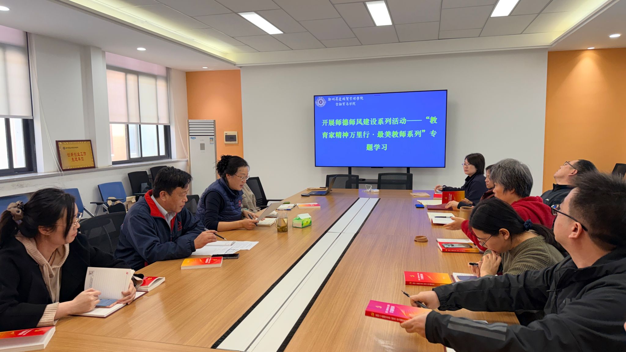 随后,学院开展“教育家精神万里行·最美教师”专题学习。全体参会成员一同观看了先进事迹专题片。该短片通过展示众多优秀教育工作者的真实事例,生动阐述了优秀教师心有大我的理想信念,行为世范的道德情操。会议要求,要继续以教育家精神为引领,把学习“最美教师”活动与师德师风建设、教师专业发展紧密结合,引导广大教师坚定理想信念,努力打造一支高素质、专业化、创新型的教师队伍。同时,学院还将充分发挥学科优势,将教育家精神融入专业教育课程,持续深化“三全育人”工作格局,引导学生树立正确的人生观、世界观和价值观,谱写教育高质量发展新篇章。