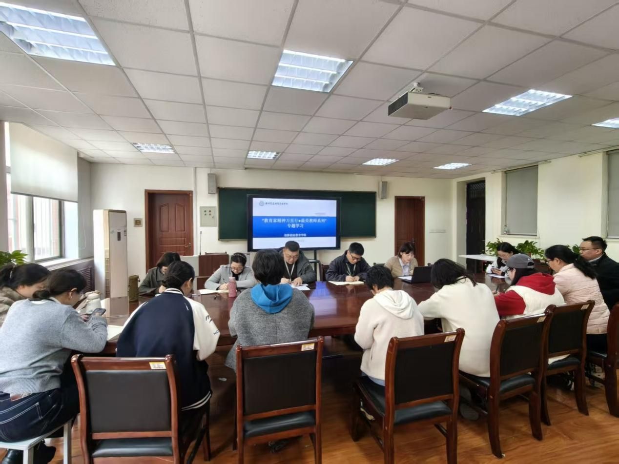 为贯彻落实学校师德师风建设要求,近日,我院组织全体教职工开展“教育家精神万里行·最美教师系列”专题学习。本次专题学习是我院师德师风建设系列活动的重要一环,旨在通过榜样的力量,激励全体教师见贤思齐,将教育家精神内化于心、外化于行。