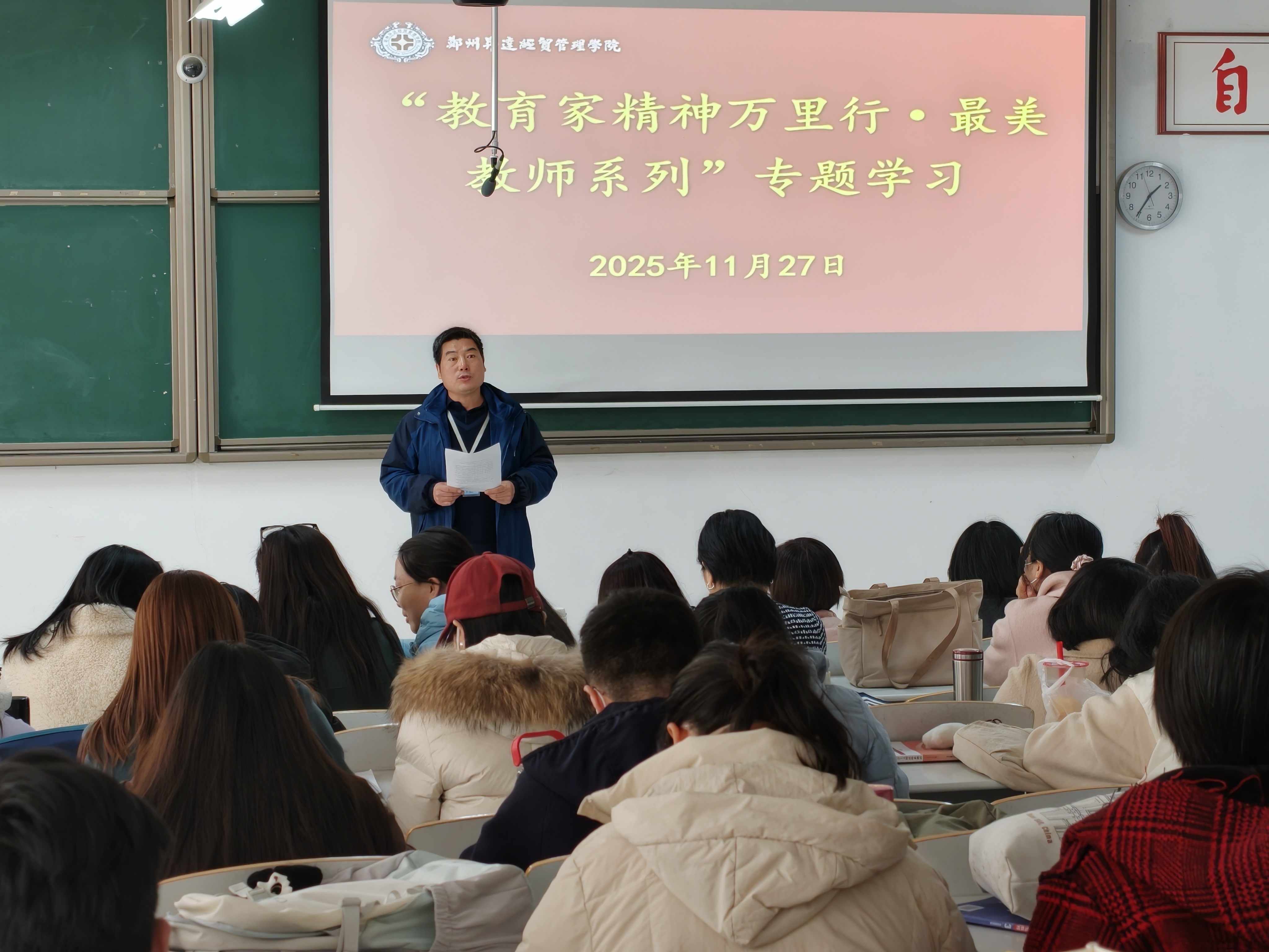 为深入学习贯彻教育家精神,夯实师德师风建设根基,2025年11月27日,外国语学院组织全体教职工开展“教育家精神万里行·最美我师系列”专题学习活动。活动由外国语学院党委书记石皓召主持,通过事迹宣讲、视频观摩、交流研讨等形式,让全体教师在榜样引领中感悟教育初心,在精神传承中凝聚育人力量。