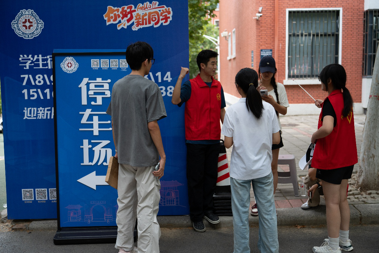 9月2日至3日,主校区迎新工作正式启动。校团委志愿者们身着统一服装、手持醒目引导牌,早早在小乔地铁站设立迎新接站点,主动上前为携带行李的新生提供帮助;同时积极协助工作人员完成绿色摆渡车的行李转运协调工作,确保新生从车站到校园的“最后一公里”安全顺畅。在校园内,志愿者们还分散在各个关键点位,耐心为新生及家长解答信息查询、报到流程等疑问,主动配合学校“线上 + 线下”融合的报到模式高效推进,有效减少了新生报到等待时间。