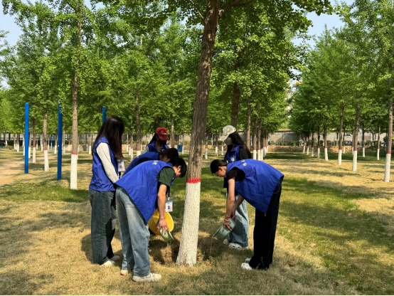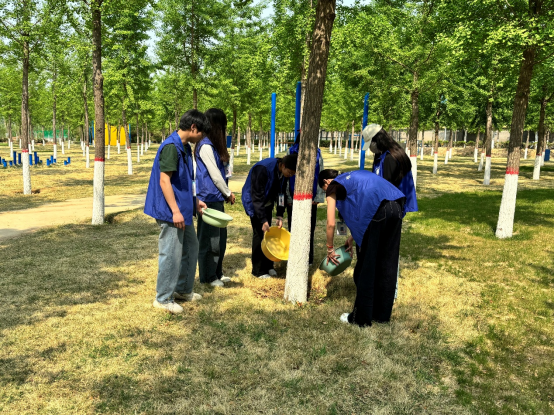 活动现场,大家热情高涨,分工明确。有的提着水桶往返于水源与树木之间,有的仔细为每一棵树木浇水,确保水分能够充分渗透到土壤之中,还有的耐心清理树木周边的杂草与杂物,为树木营造良好的生长环境。在浇水过程中,同学们还相互交流分享养护树木的小知识和技巧,欢声笑语回荡在校园的各个角落。