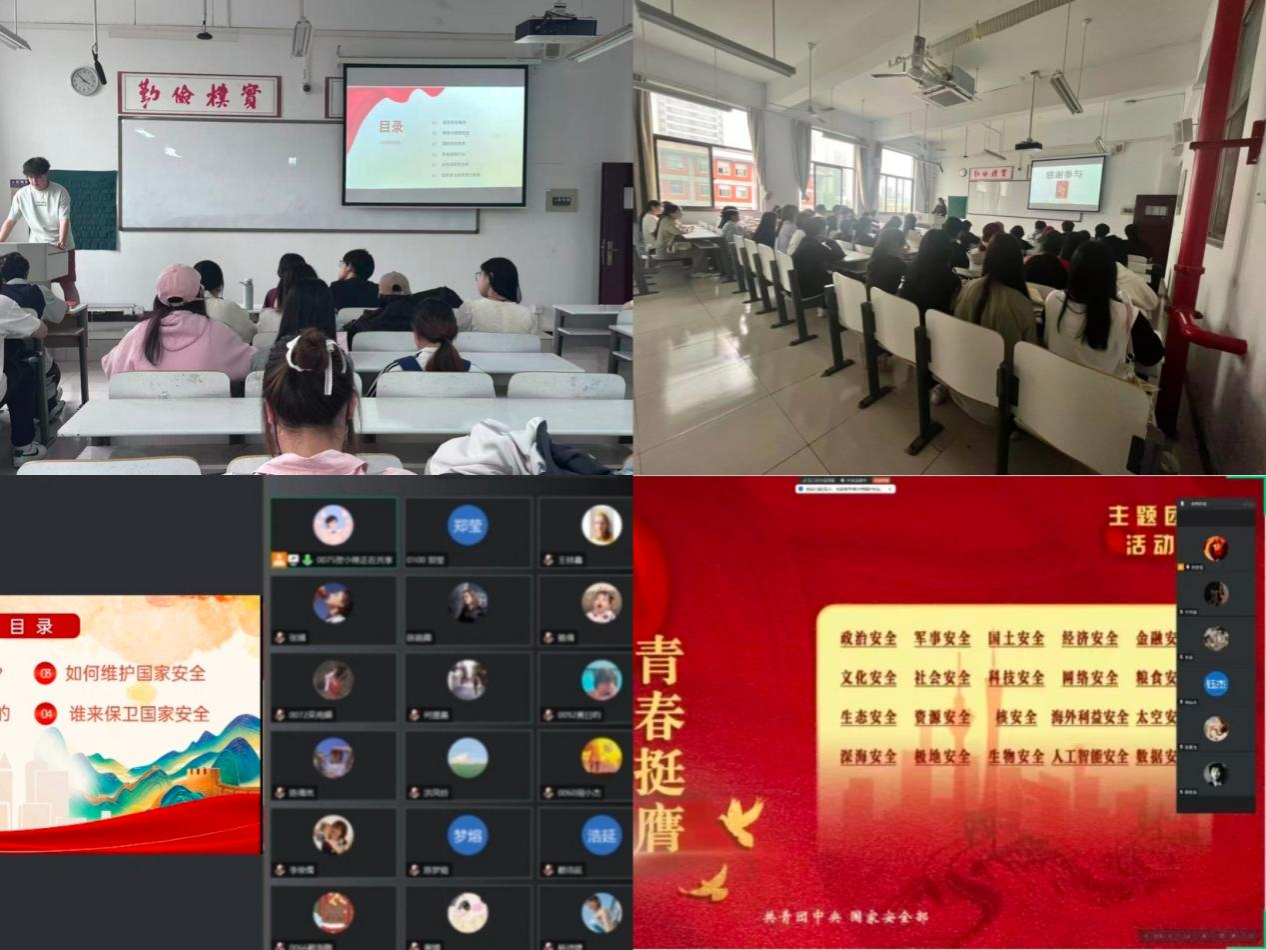 各团支部积极响应团委号召,精心策划,围绕“国家安全,青春挺膺”的主题,开展了一系列丰富多彩的主题团日活动。21级金本1班团支部、22级国专1班团支部充分发挥线上平台优势,通过线上会议详细向团员讲解了国家安全的内涵、重要性以及青年人在维护国家安全中的责任与担当。23级金本1班团支部通过国家安全知识问答,激发同学们的学习热情,带领同学们深入了解国家安全;24级金本4班团支部则通过模拟安全演练,让学生充分感受国家安全对于国家发展、民族复兴的重大意义。大家纷纷表示,要时刻绷紧国家安全这根弦,将国家安全意识融入到日常学习和生活中,用实际行动践行青春挺膺的誓言。