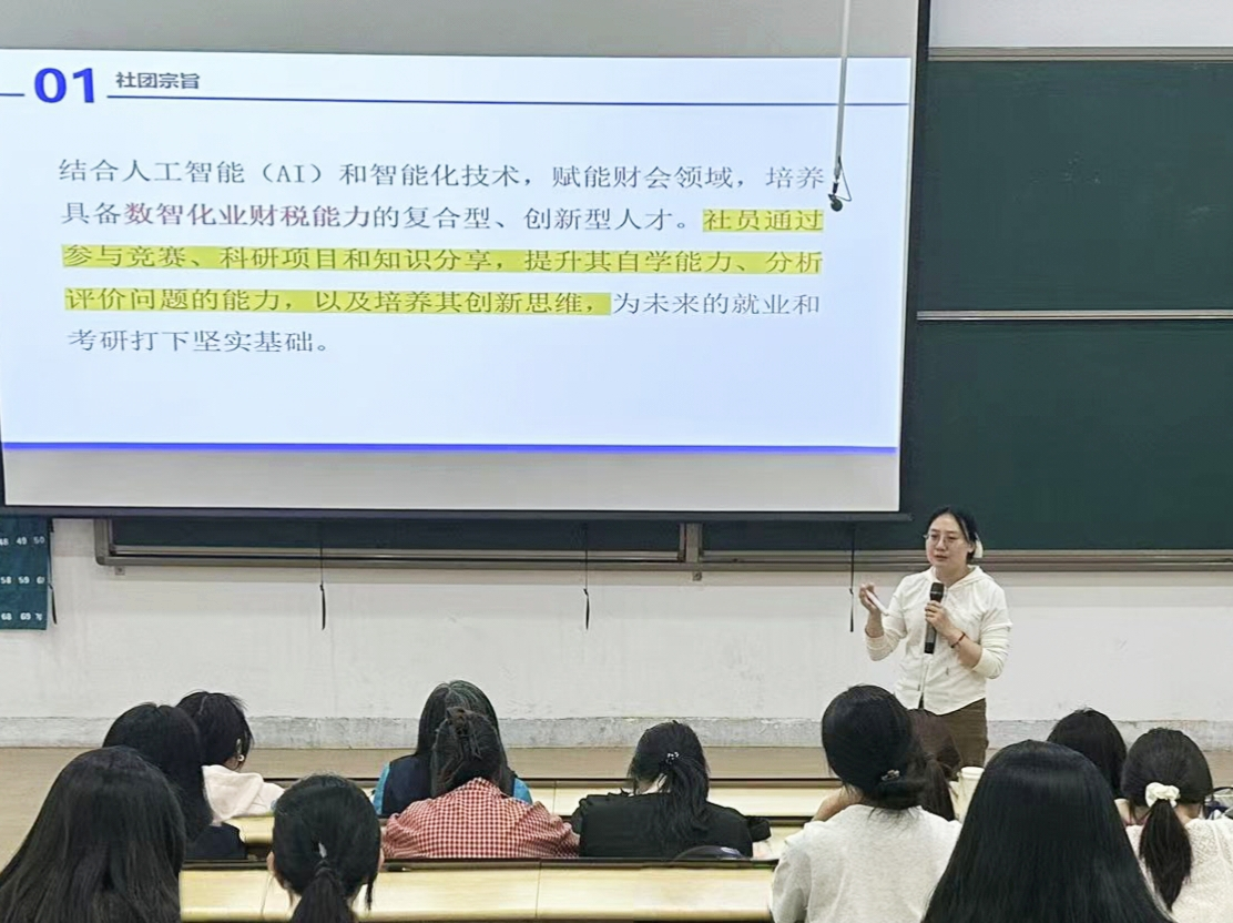 会议伊始,会计学院副院长毕鹏翾围绕此次分享会主题展开发言,提出社团成员需紧跟时代步伐,主动学习数字化工具,提升数据分析与决策支持能力,为未来职业发展夯实基础。随后,社团指导老师庞瑞博对社团工作计划进行规划指导,围绕社团发展前景与趋势展开阐述,为大家指明了学习与实践的方向。在自主分享环节中,同学们踊跃上台,积极参与,现场氛围热烈。