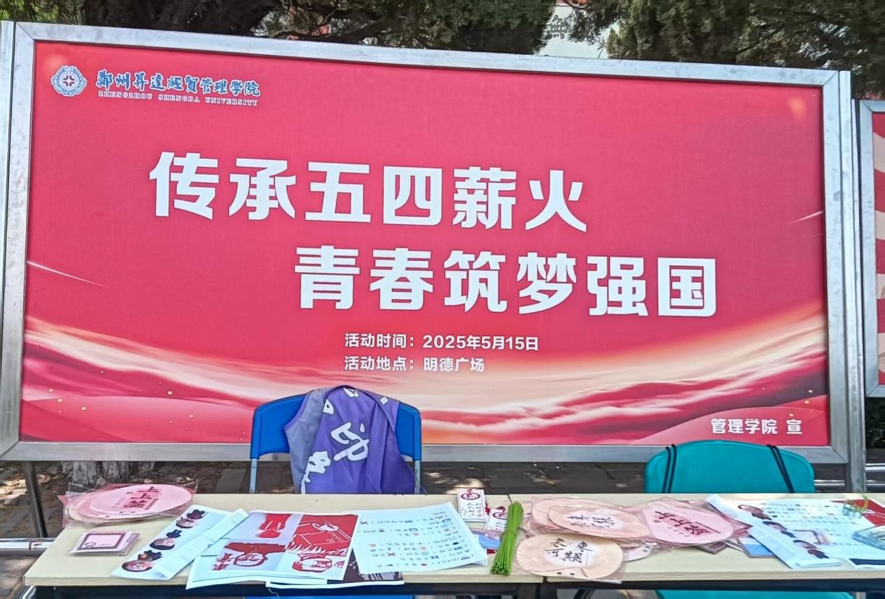 为纪念五四运动,传承和弘扬五四精神,管理学院于2025年5月15号在明德广场对面精心策划并开展一场主题为“传承五四薪火,青春筑梦强国”五四活动,众多同学齐聚,积极参与活动,共同重温历史,汲取奋进力量。