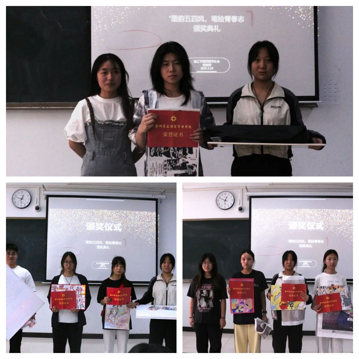 经过评委评审,共评选出一等奖1名、二等奖2名、三等奖3名及优秀奖4名。学生会执行主席杜瑞晴在颁奖仪式上指出:"这次活动不仅是一次艺术竞赛,更是一堂生动的思政课。同学们用画笔诠释了五四精神的时代内涵,展现了建工学子的艺术才华和家国情怀。"此次大赛的优秀作品将在万林大楼一楼展厅进行为期两周的展览,本次活动是建工学院"五四青年文化月"系列活动的重要组成部分,后续还将开展主题团日、青年论坛等活动,持续深化爱国主义教育。