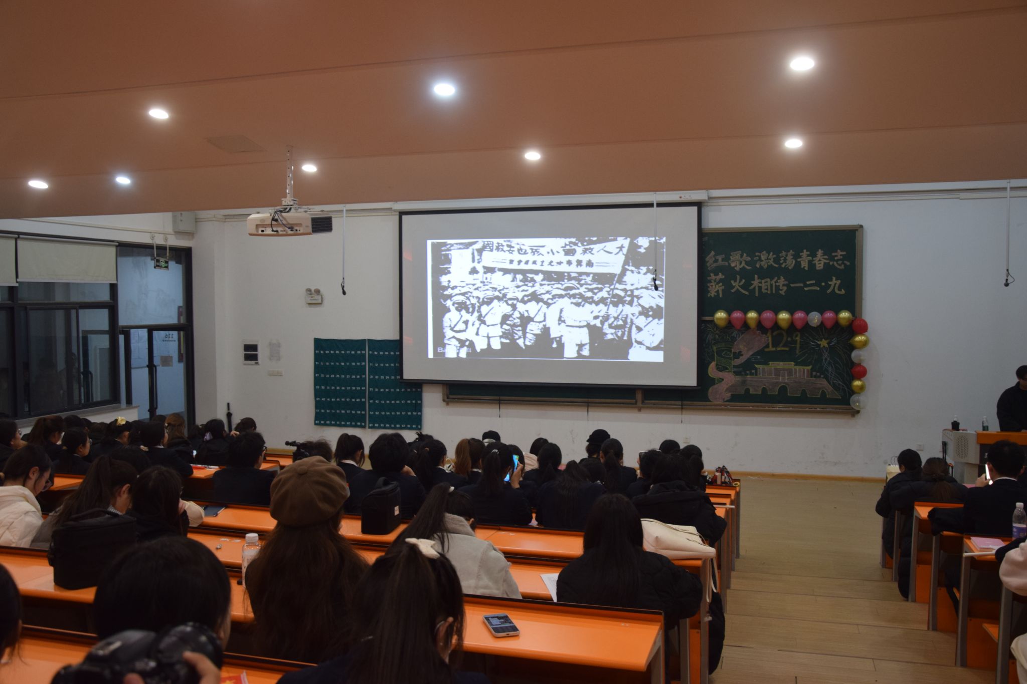 为重温革命历史、传承红色基因,引导广大青年学子厚植家国情怀、勇担时代使命,由外国语学院团委学生会主办,外国语学院组织部、星光公社承办的以“颂歌忆峥嵘,青春续华章”为主题的一二·九红歌合唱比赛于2025年12月9日晚18:30在教学二号楼116正式展开。出席本次活动的有外国语学院党委副书记兼团委书记丁玥老师,外国语学院党建组织员王彬老师,院团委副书记武珍毅老师,徐飞飞老师,郎振丹老师及指导老师张媛媛老师、岳晓宁老师及外国语学院各年级学生代表。