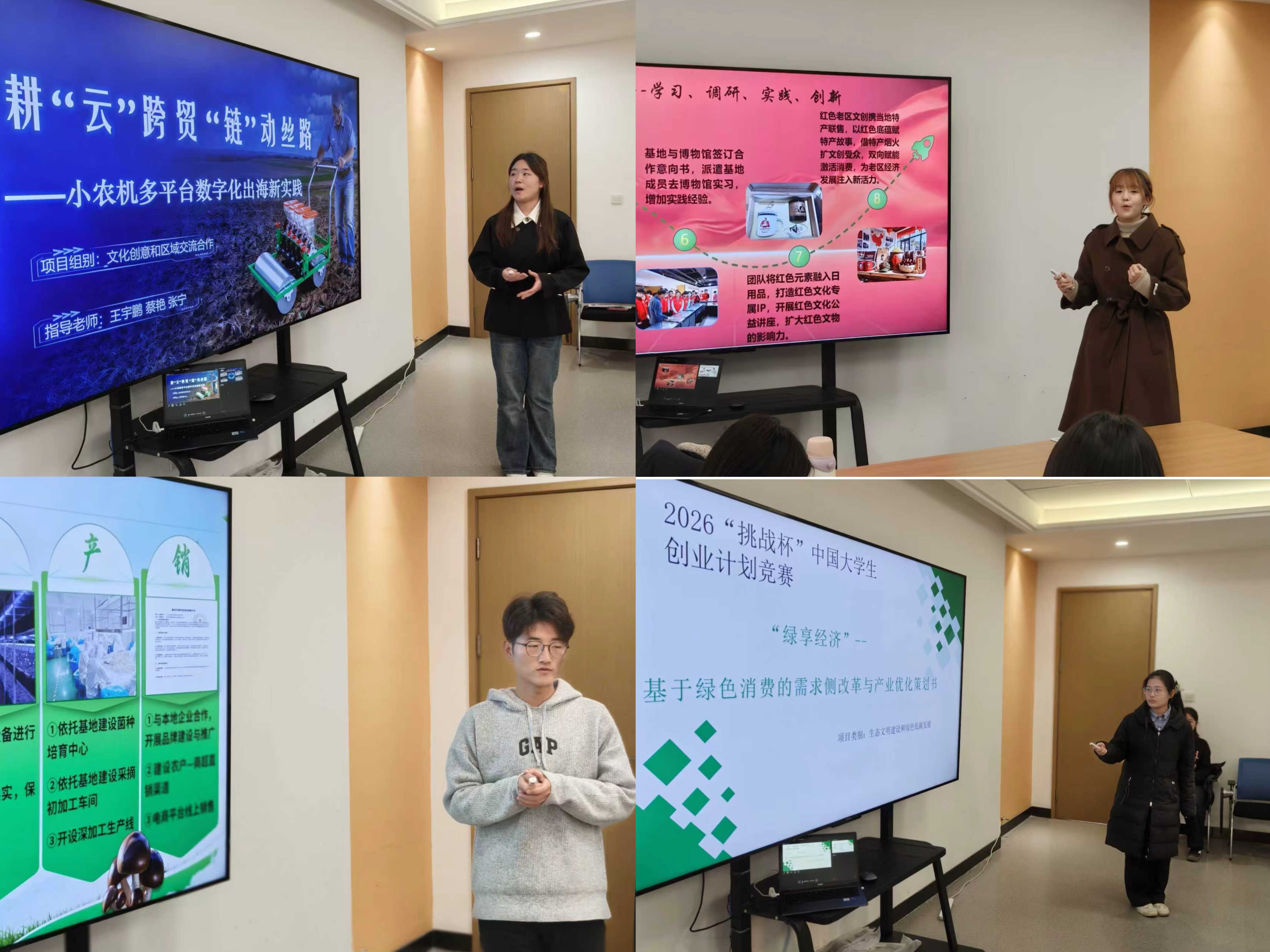 各团队按照顺序依次汇报,通过PPT汇报清晰阐述项目核心思路、运营规划与核心优势,充分展现出扎实的专业基础、良好的应变能力与团队协作精神,现场氛围热烈,创意与思维的碰撞不断涌现。
