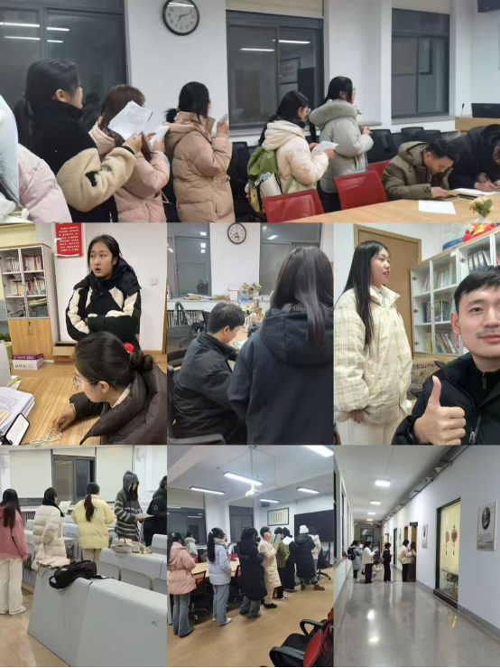 活动以“晨读+晚背”双轨模式同步推进,组建5个线上学习微信群,吸引全校750名学子踊跃参与,截至发稿共完成493篇优质文章背诵,总参与人次达485次,实现了语言能力进阶与文化自信培育的双向赋能。 每日清晨7:00-7:30,图书馆广场书声琅琅,英语协会负责人现场精准纠音、点拨语调,引领学子以饱满状态开启高效学习;晚间19:00-21:00,固定教室化身沉浸式学习空间,专业教师亲临指导语音技巧、细致核查背诵成果,助力学子扎实巩固当日所学。线上则通过微信群搭建互动桥梁,形成“线下集中研学+线上打卡交流”的立体化学习生态。