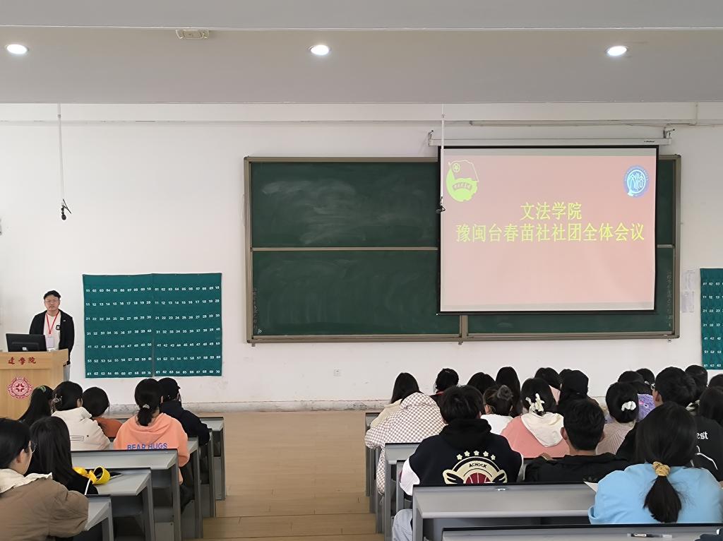 为丰富学生课余生活,营造活跃的校园文化氛围,助力文法学院社团文化建设。11月22日中午12点,豫闽台民俗文化春苗社在教学1号楼118教室召开第一次全体会议。文法学院社团指导老师李群锋、王松洁,文法学院第二十二届团委学生会主席团和社团全体社员参加此次大会。文法学院学生会副主席韩祥林主持本次大会。