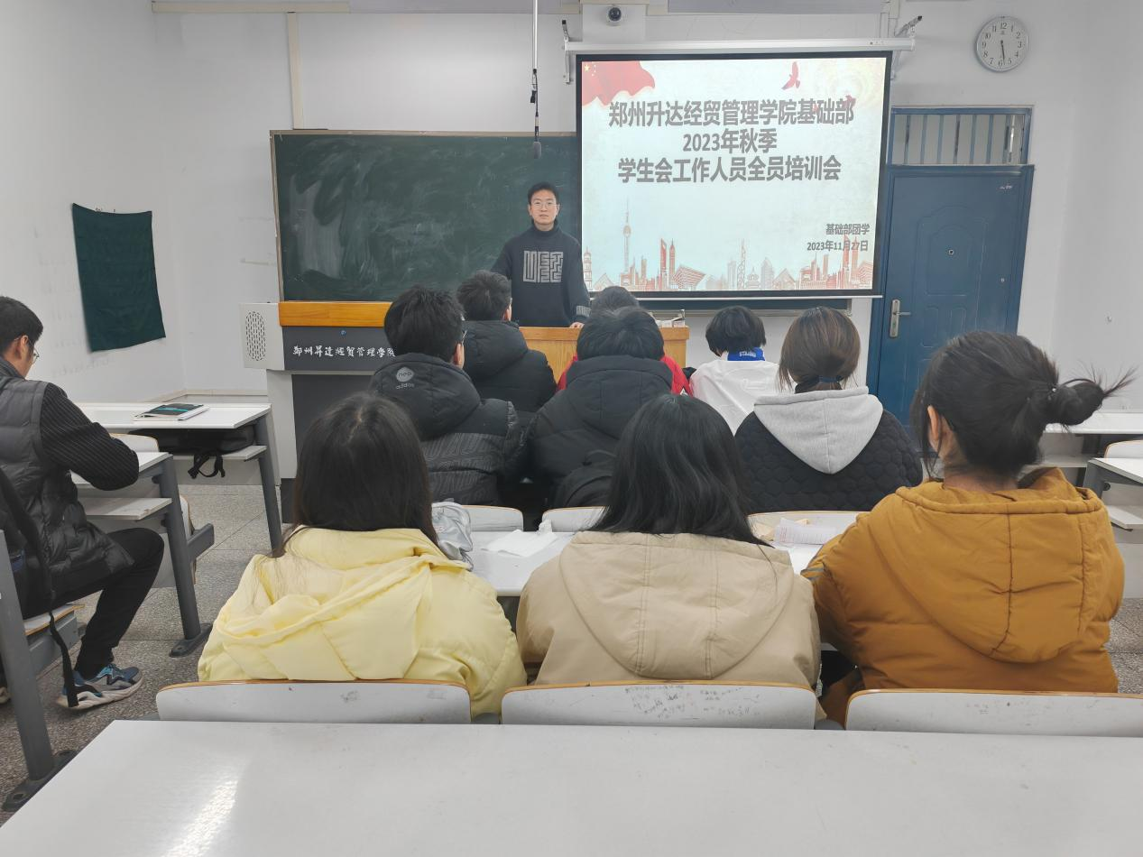为落实高校学生会改革相关文件要求,积极响应学校学生会工作人员培训的号召。基础部全体学生会工作人员于11月29日下午5点在综合楼127教室召开学生会工作人员培训会,本次会议由基础部学生会执行主席亓一迪同学主持。