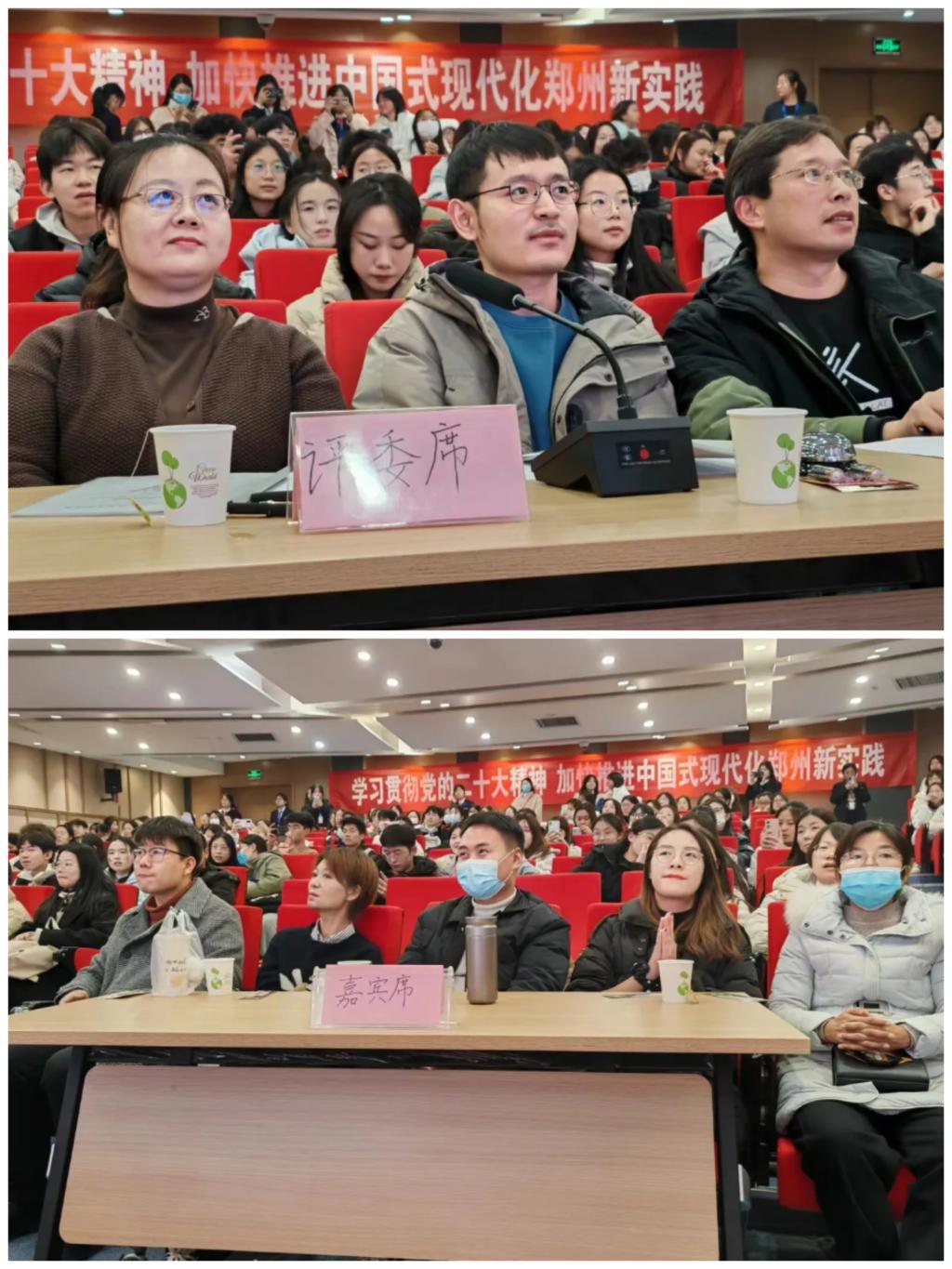 最后,由外国语学院马添翼老师、王余成老师、彭诚老师、孙明老师、张保培老师为获奖选手颁奖。选手发表获奖感言,讲述自己的心理历程。