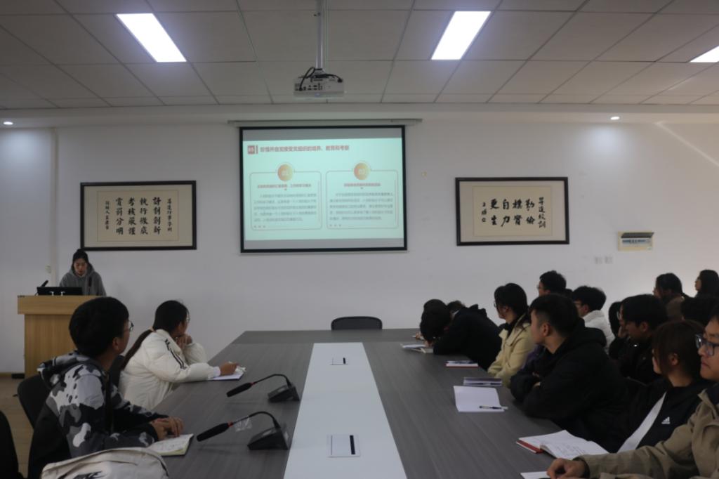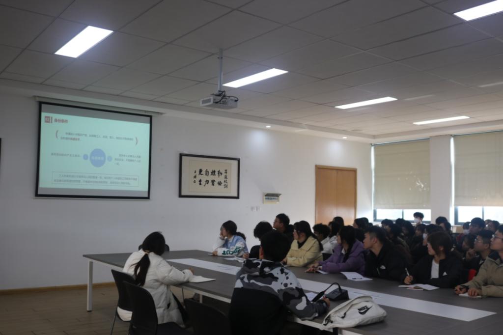 为使同学们学习党的理论知识,并提高同学们的思想觉悟,管理学院于2023年12月6日12:50在二号楼209教室举行2023-2024学年第五期团课。与会人员有管理学院党委组织委员祖鹏阳老师,团委组织部部长刘子琦,团委组织部副部长杨鑫淼、张亦婷,2023级各班班干部以及拟新发展团员。由管理学院祖鹏阳老师担任此次团课主讲人,团委组织部部长刘子琦担任此次团课主持人。