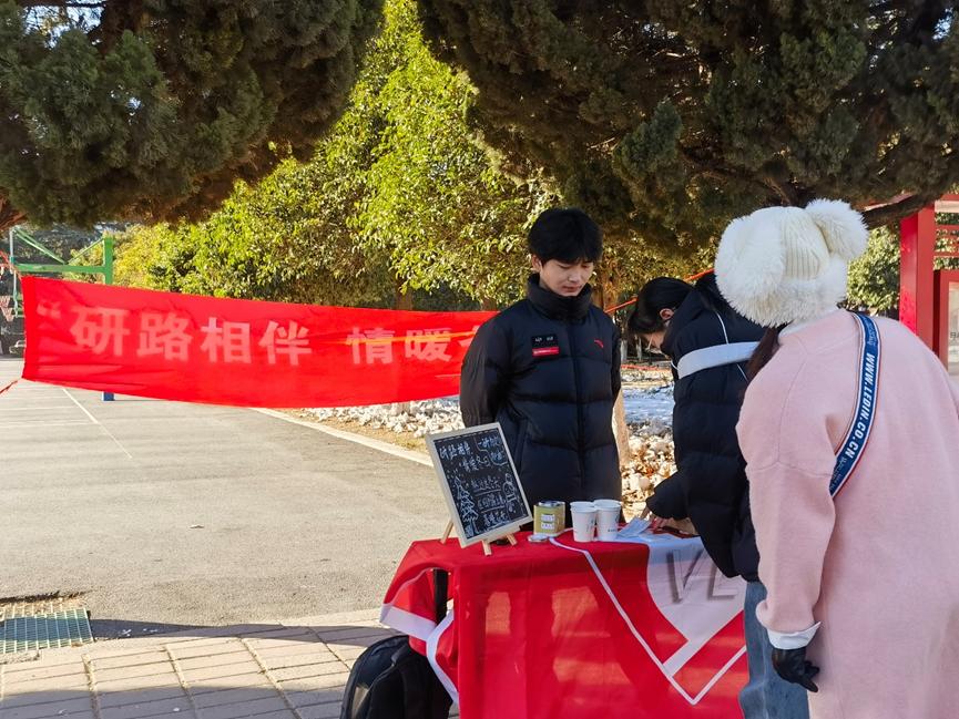 冬日有回音,研途有温情。为了帮助会计学院考研学子缓解考前压力,增强备考信心,会计学院微益青年志愿者协会于12月21日下午在明德广场前举办了“研路相伴,情暖冬日”活动。